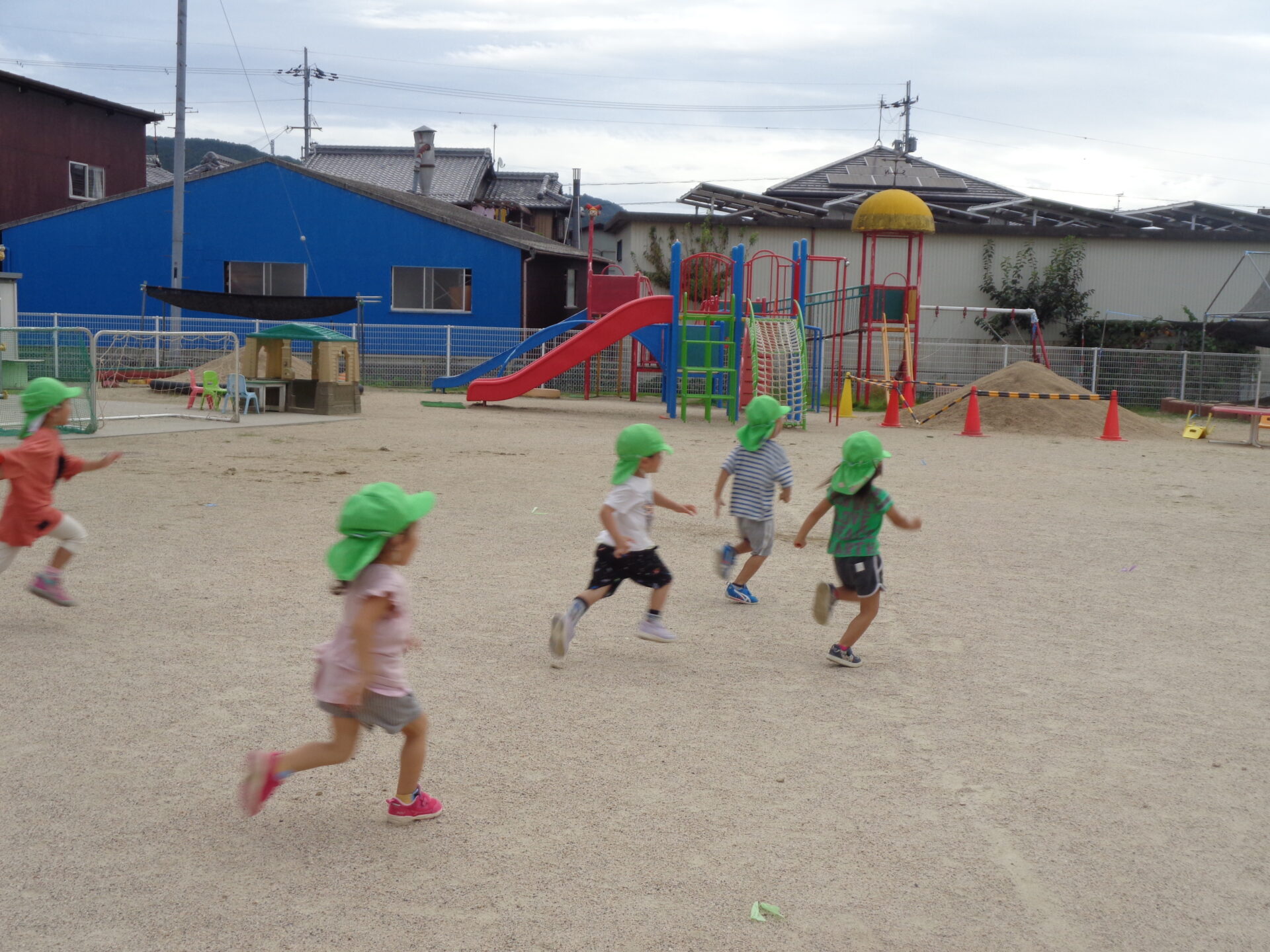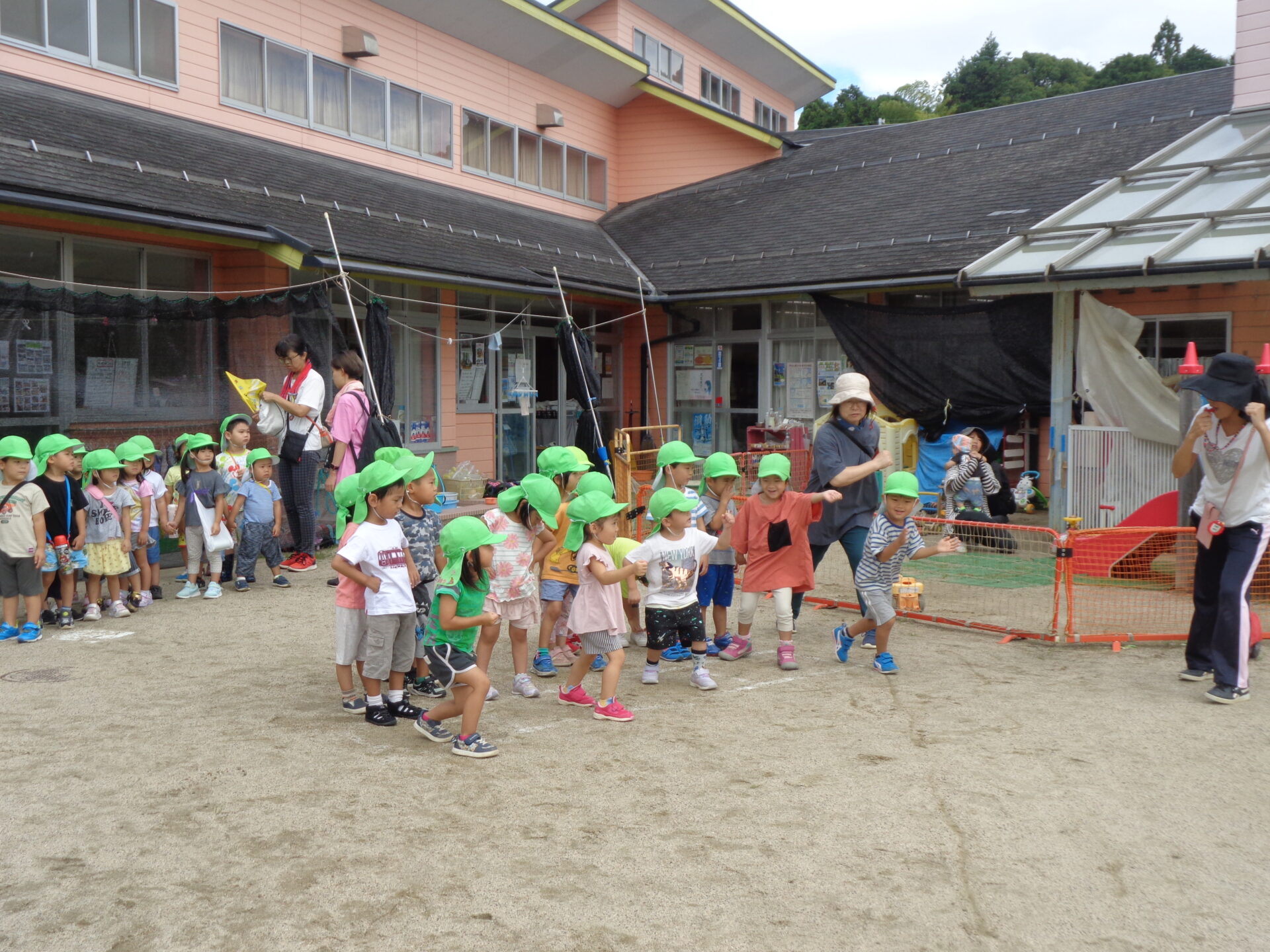 最近のもも組の子どもたちは、年長児のかけっこをみて自分たちもやる気満々になっています。