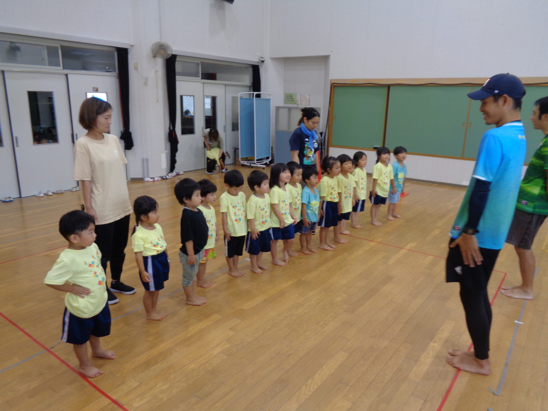 コーチの話を聞いて、リズムを感じながら音楽に合わせてジャンプ!ジャンプ!