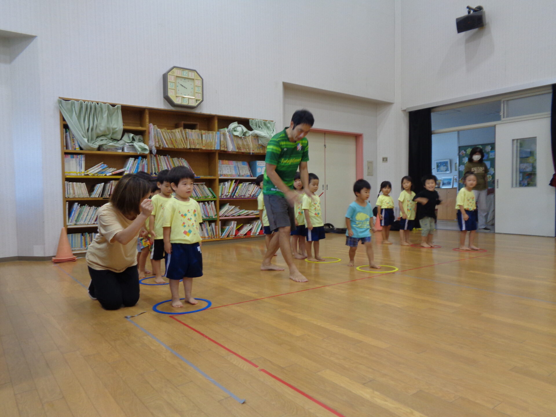 3歳児 すいか組 わくわくたいむで リズムジャンプ・かけっこ をしたよ!