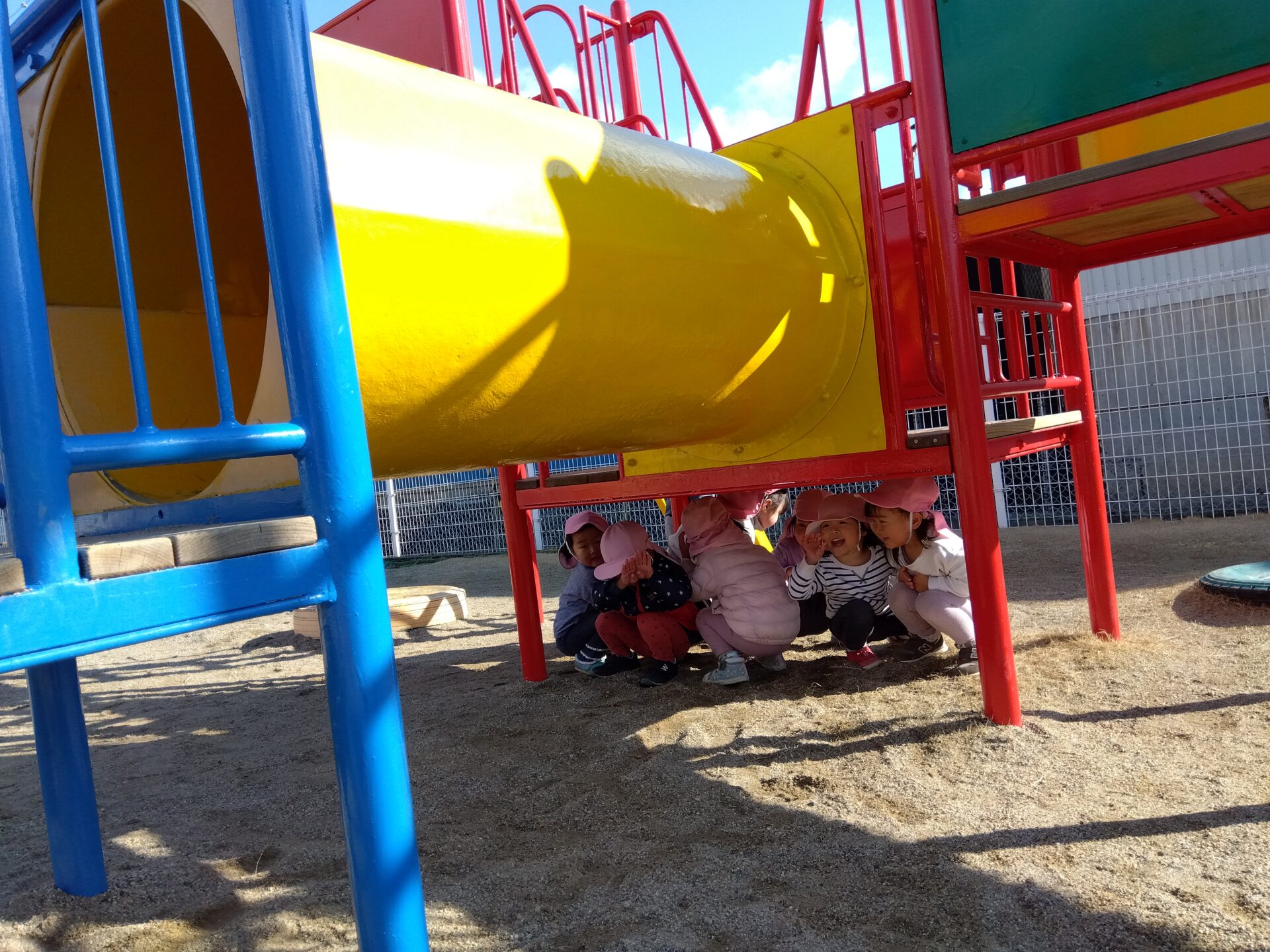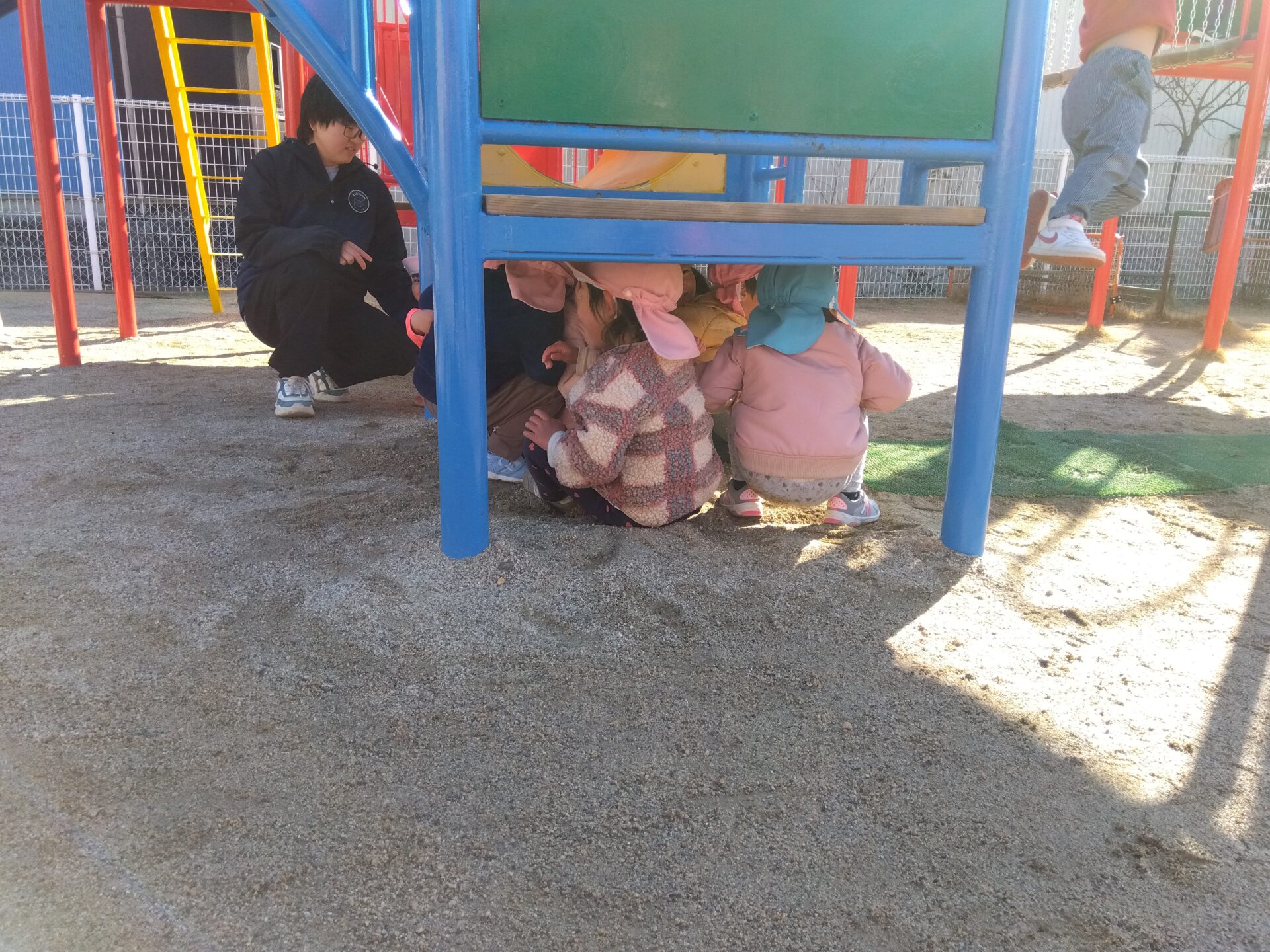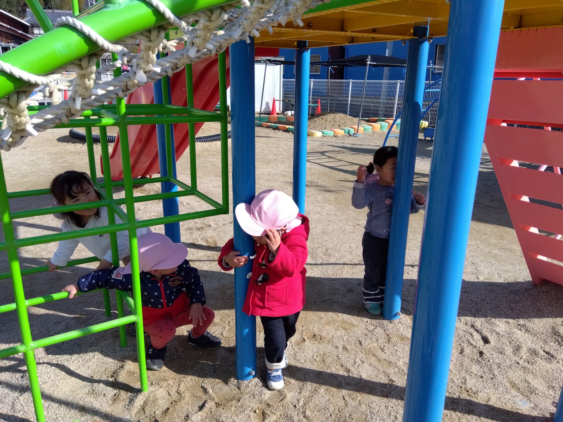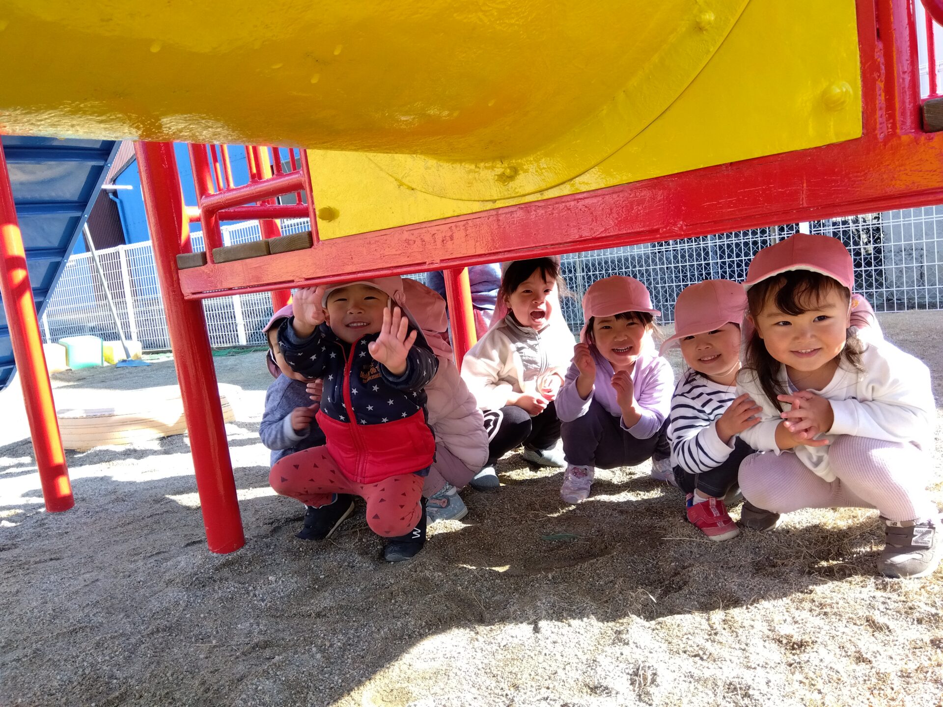 園庭に出ると「せんせい見つけてな~!」と張り切って隠れ場所を探します。
