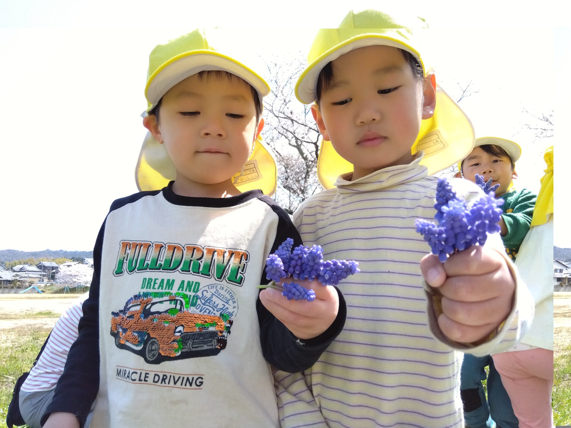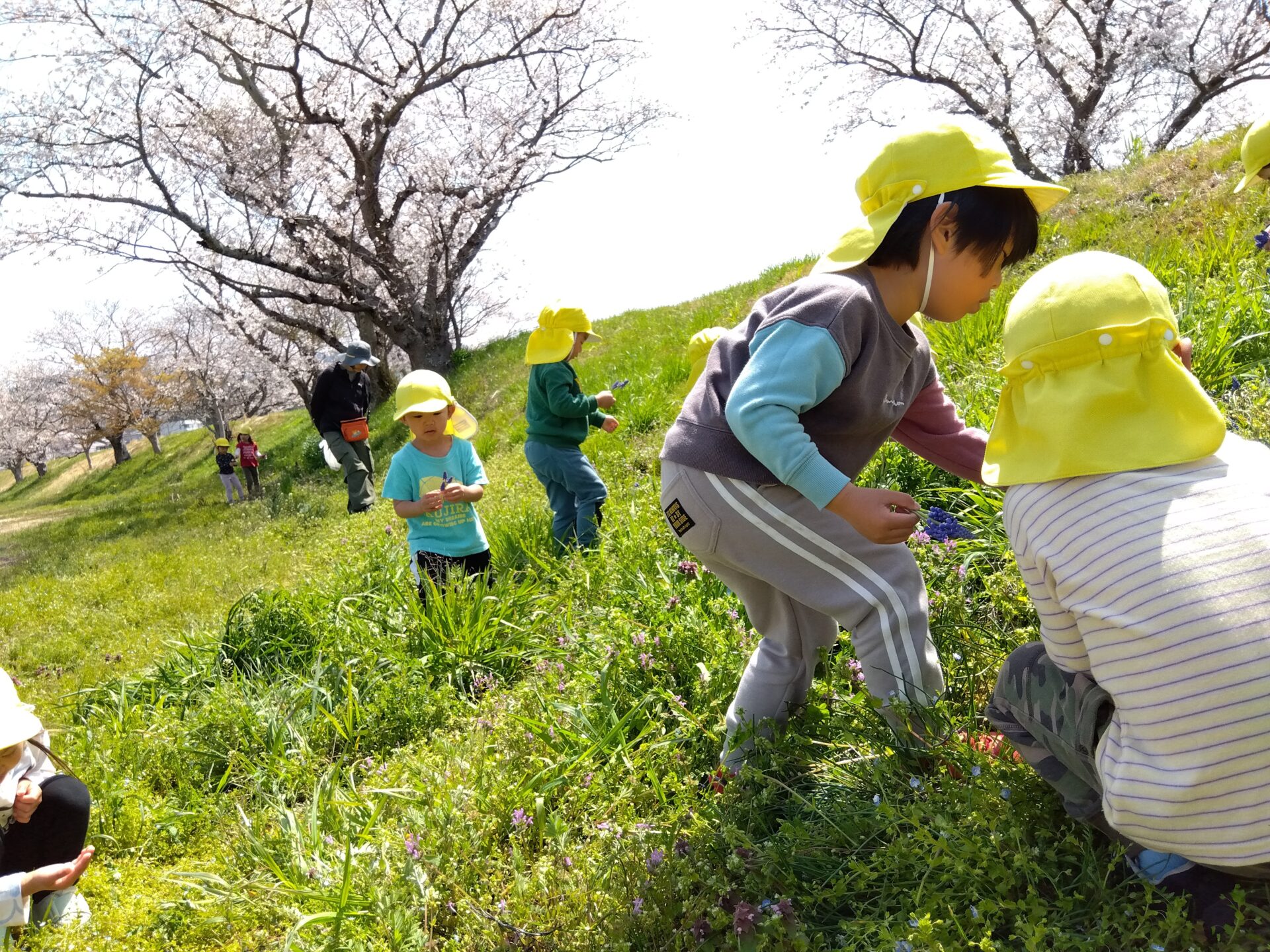 小走りしたり、友だちと手をつないで歩いて春の自然を感じることができました。
