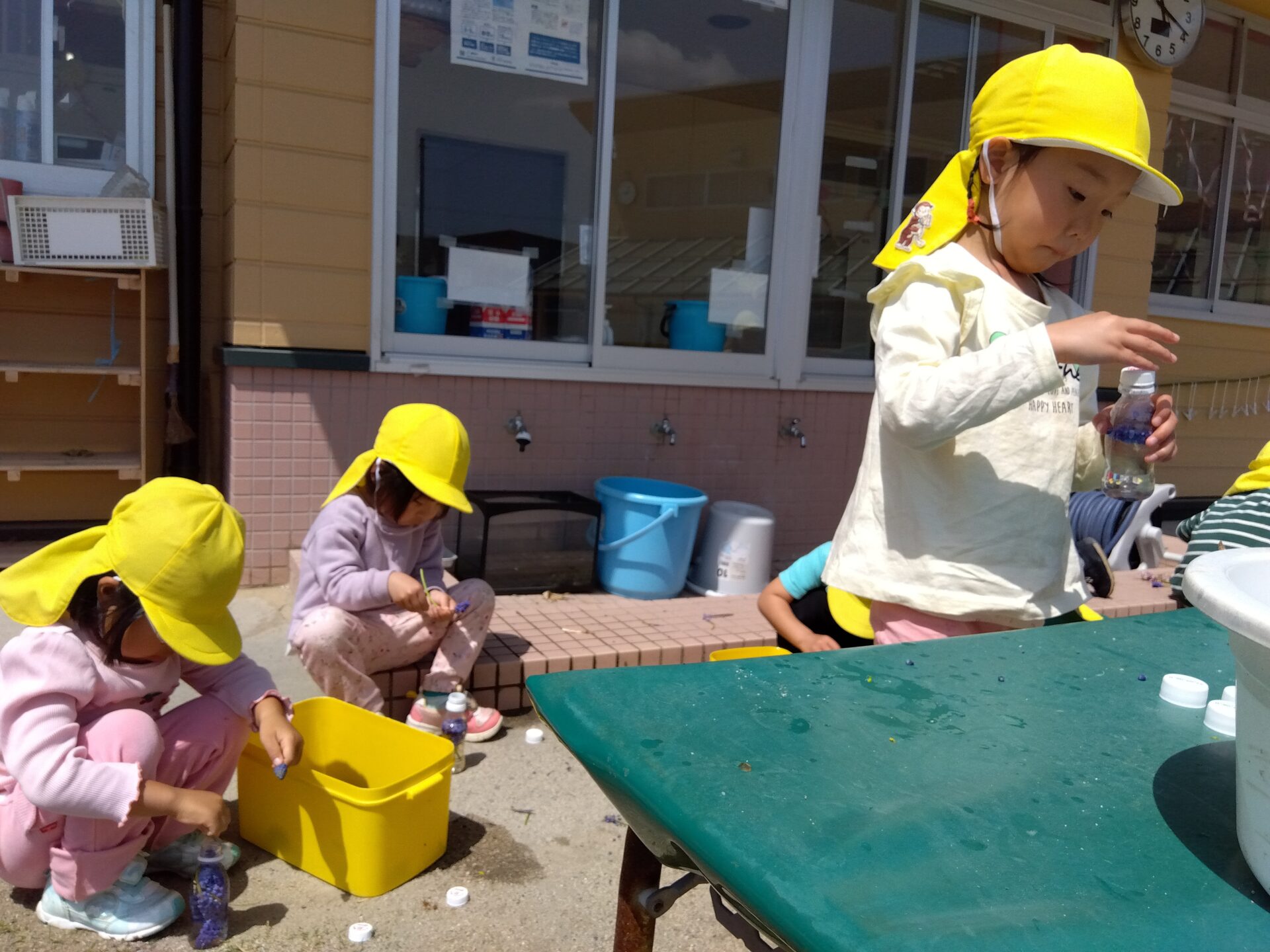 草花をもちかえり、園庭でジュース作りをして楽しみました。