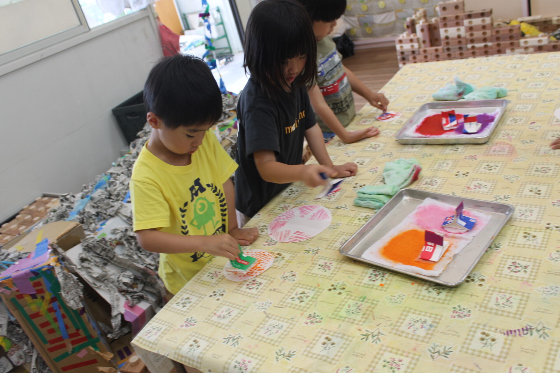 次は、色やスタンプを変えて、一人ひとりオリジナルの模様をつけていきました。