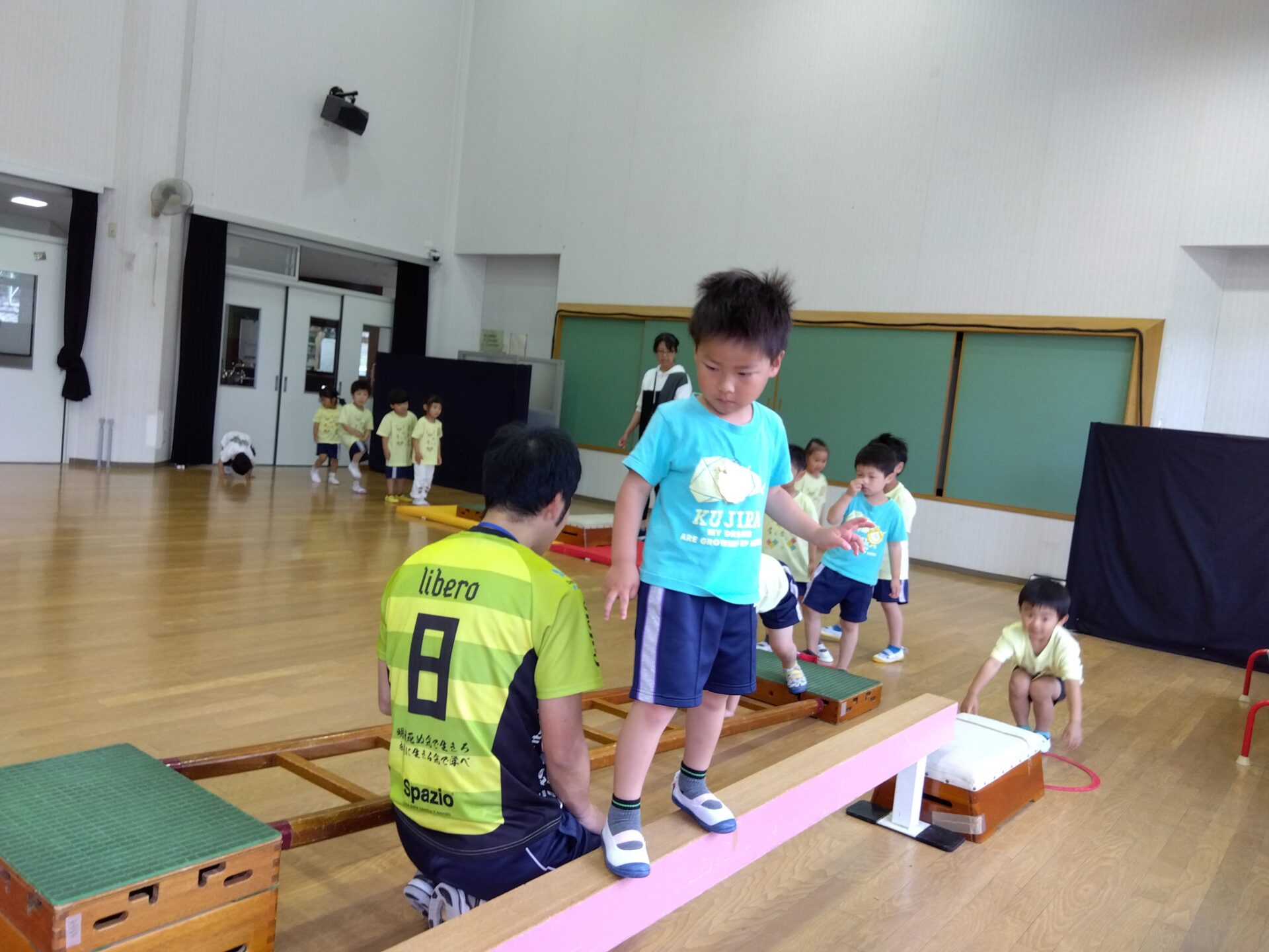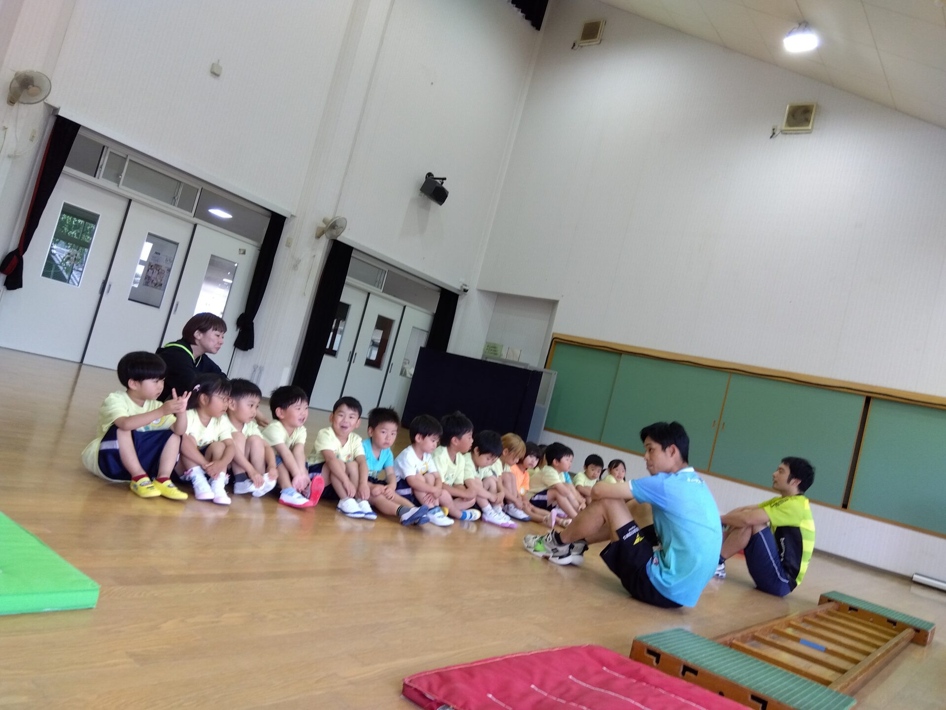 うまく出来なくても、諦めずに挑戦している子ども達。頑張る姿をたくさん褒めてもらって、嬉しいそうでした!普段の遊びの中でも取り入れて、出来る事が増えたらコーチに見てもらってびっくりさせようね♪