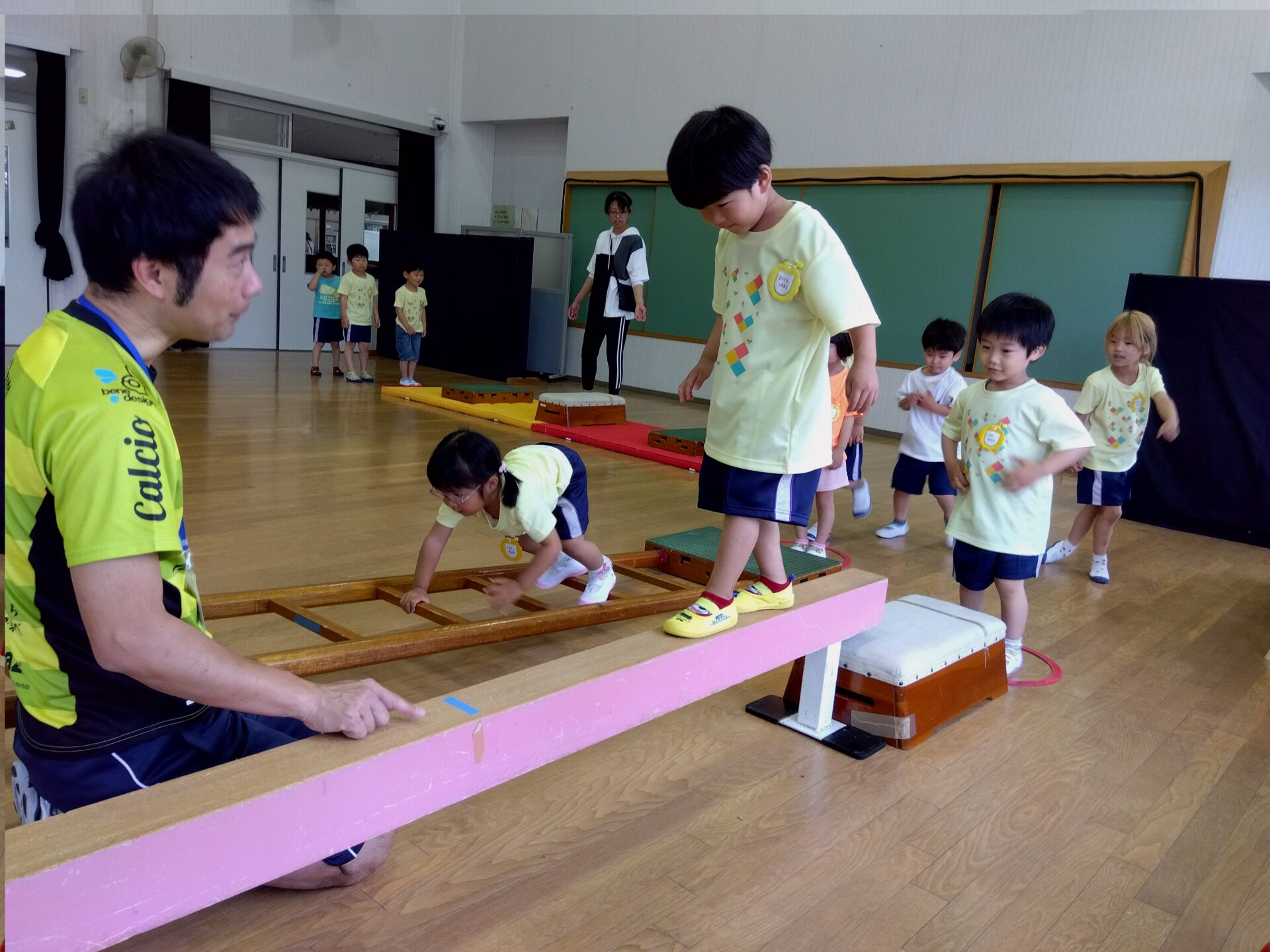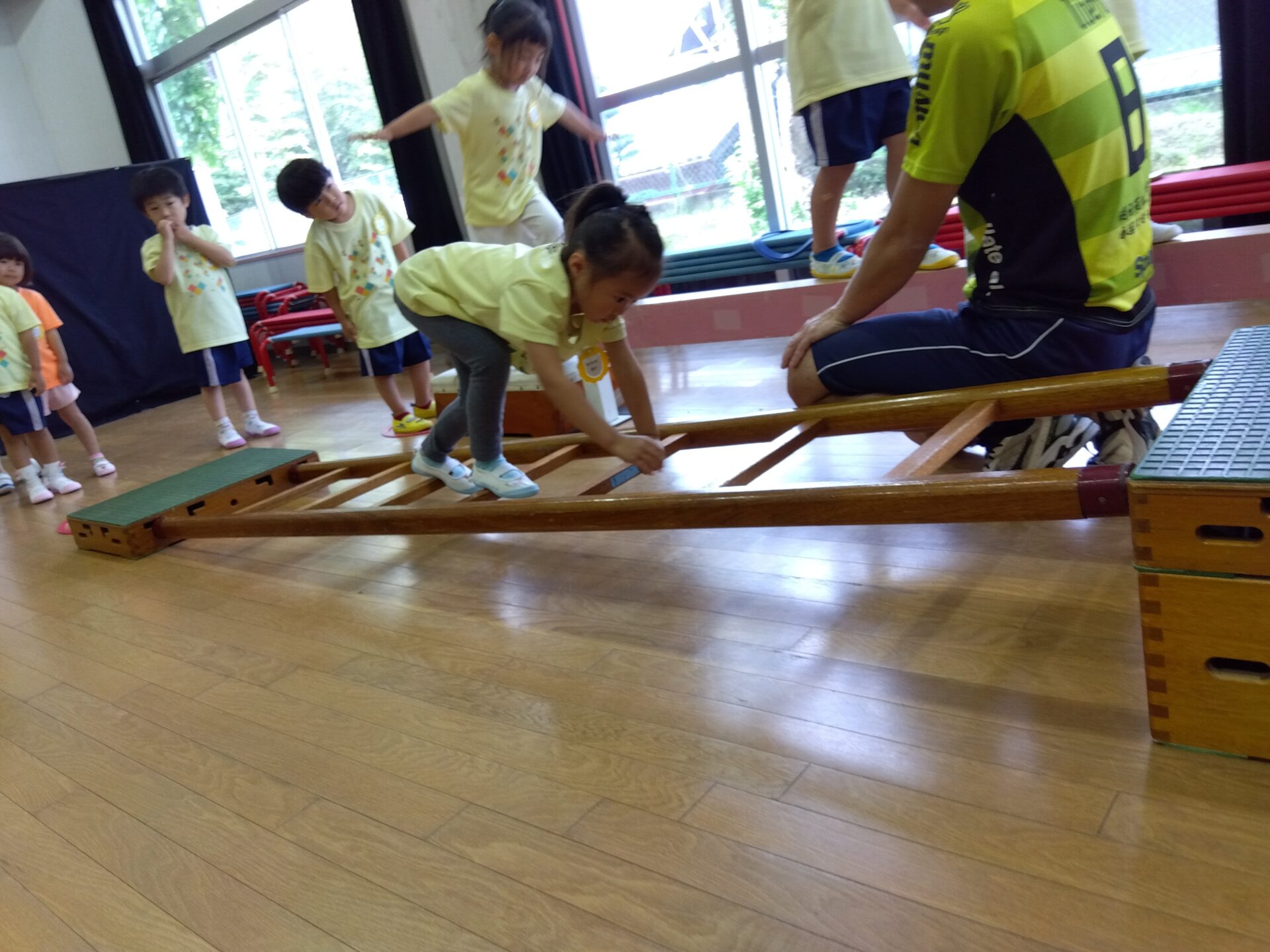 いつもと違う巧技台の遊び方に、「たのしみ♪」と、とても期待を膨らませる子どもたち。