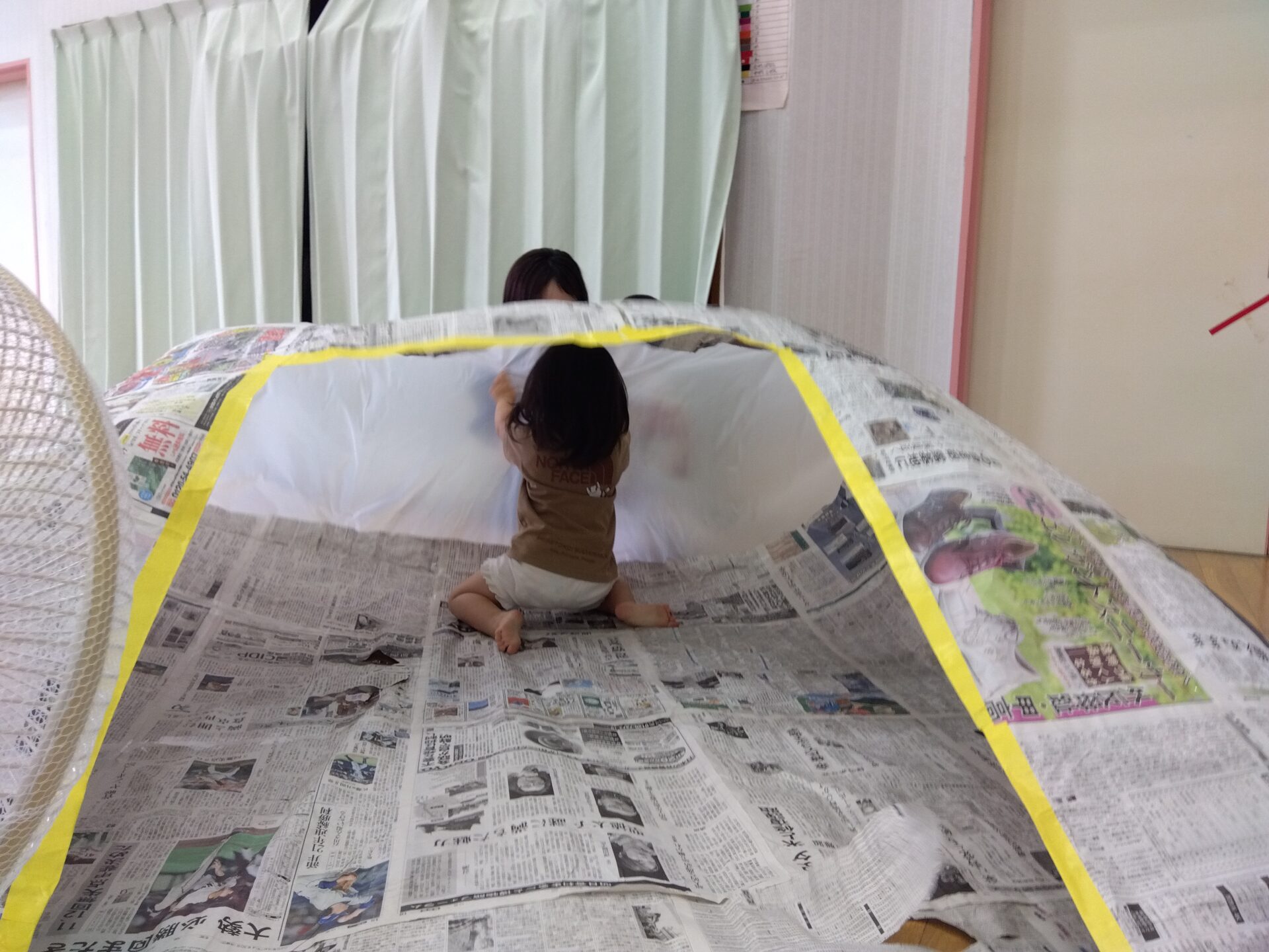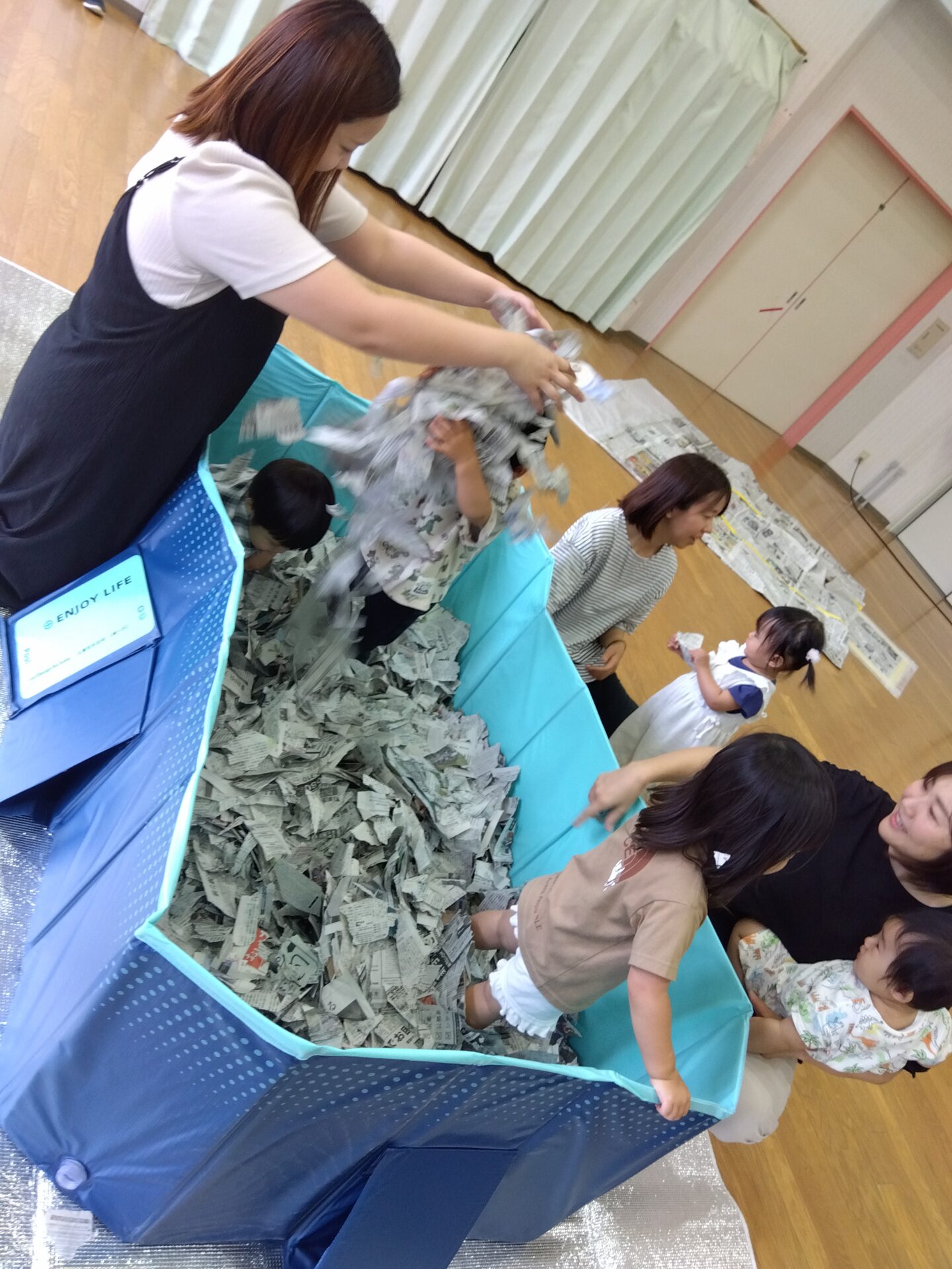 2025.06.26 ブログ のびのびくじら ~新聞紙遊び~ 最初に絵本タイム 今回の絵本は『はみがきれっしゃとしゅっしゅっぽー』 新聞紙遊び ちぎったり、丸めたりしながら遊びました。新聞紙プール・新聞紙ドーム にもチャレンジしてみましたよ。 パズルや手作りおもちゃで遊んだり、親子でゆったりと穏やかな時間を過ごす姿がみられました. 次回の のびのびくじら 7月10日木曜日10時からです。おまちしています。 一覧へ戻る
