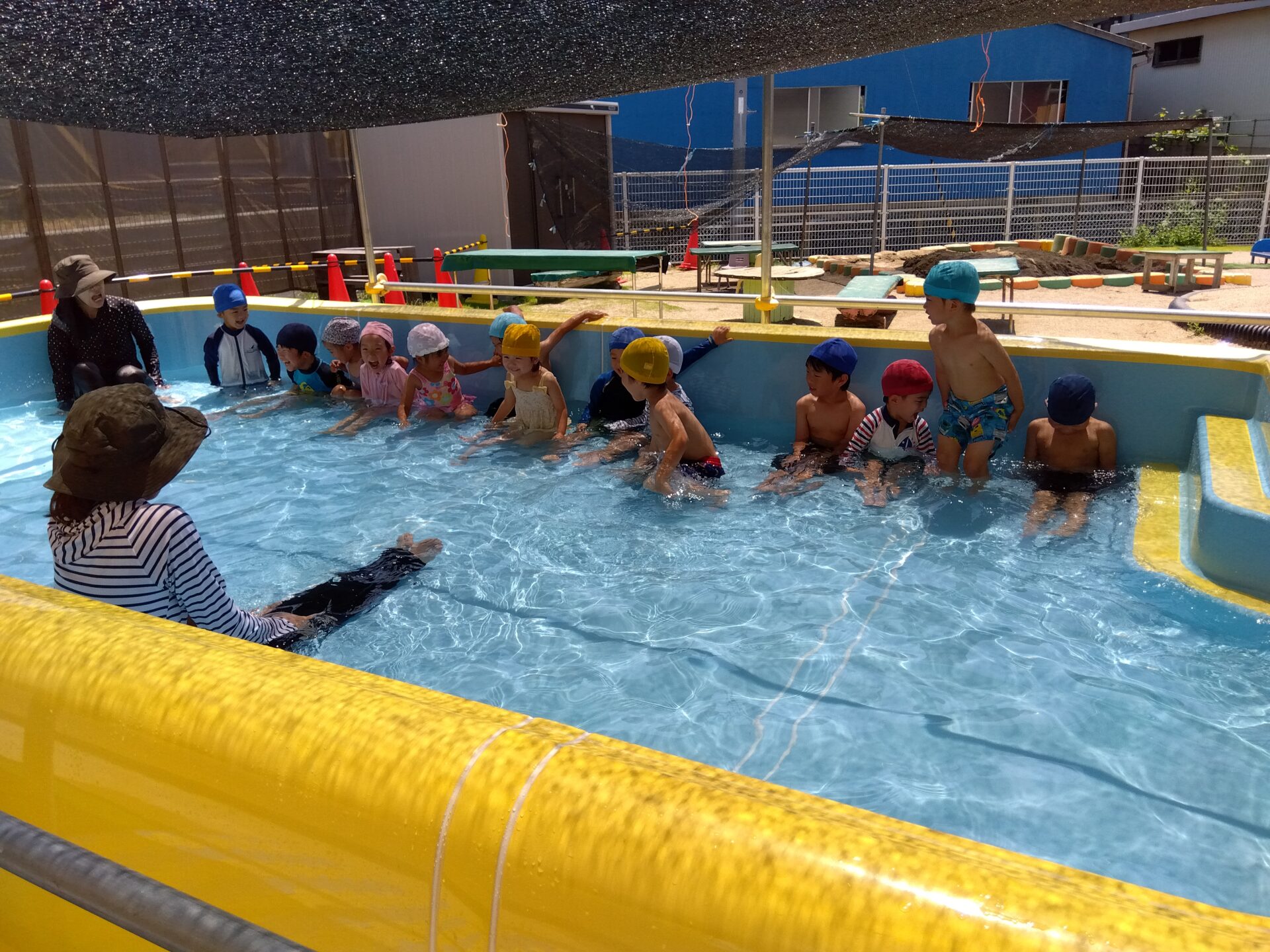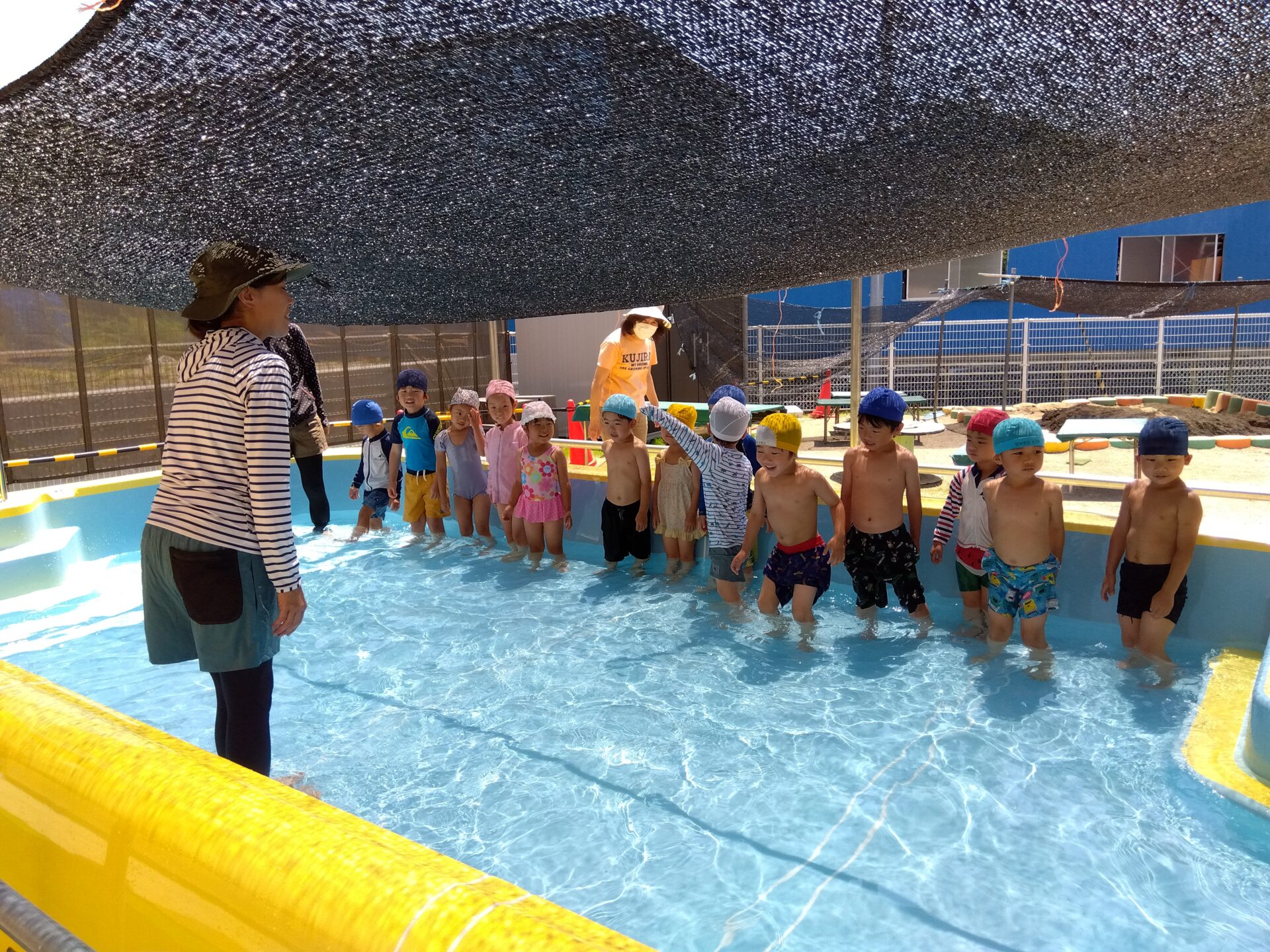 2025.07.03 ブログ プール開きがありました 保育室でプール遊びのお約束を聞きました。 水着に着替えて、プールへ。「つめたい」「きもちいい」と大喜びのこどもたち。 これから、天気が良い日や蒸し暑い日におもいっきり水に触れて遊ぶことが楽しみですね。 一覧へ戻る
