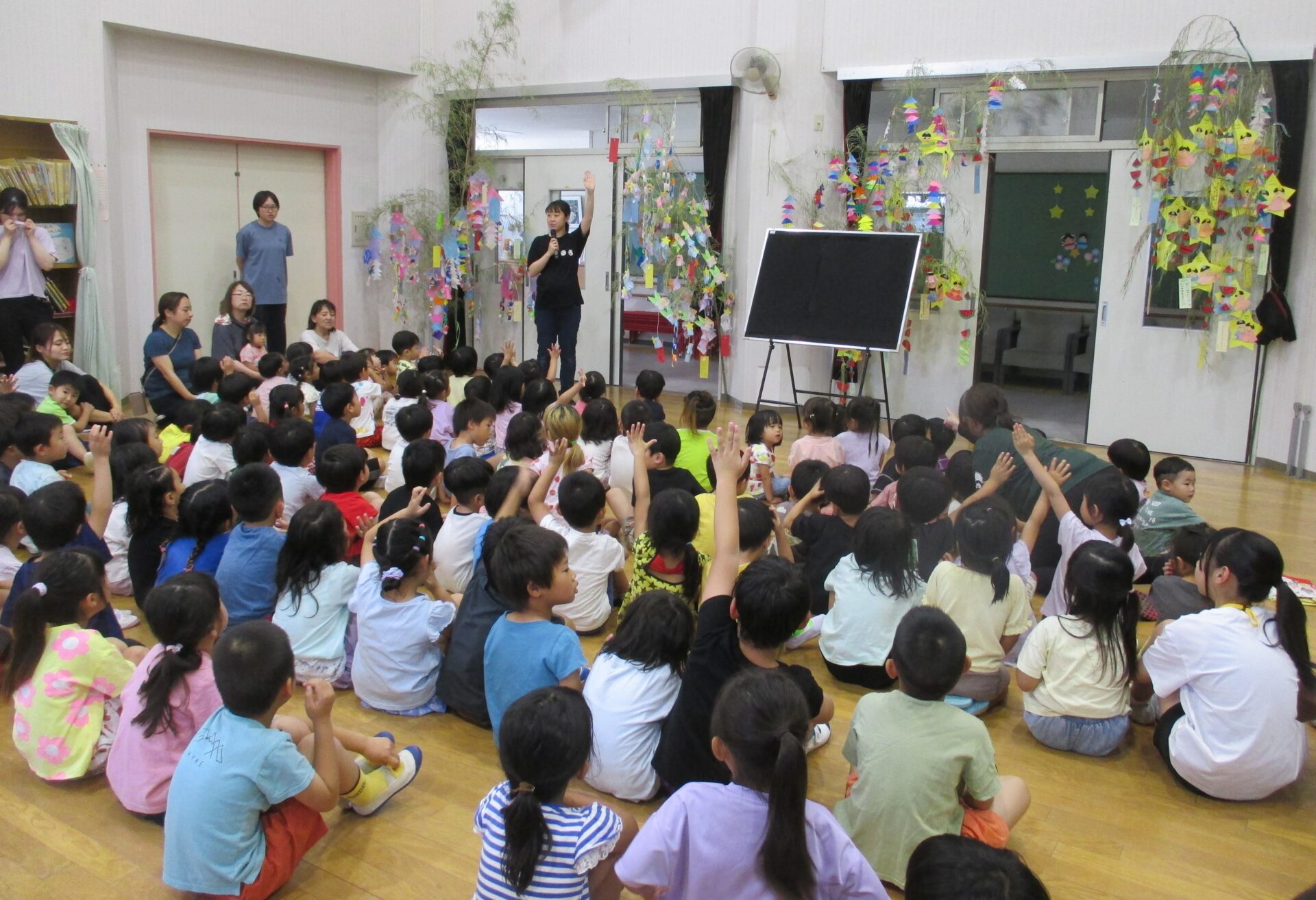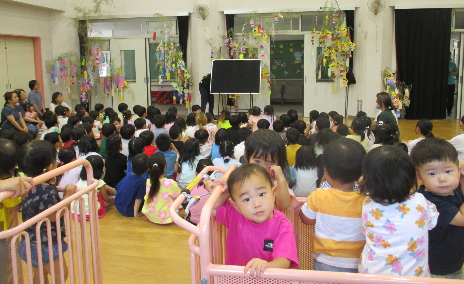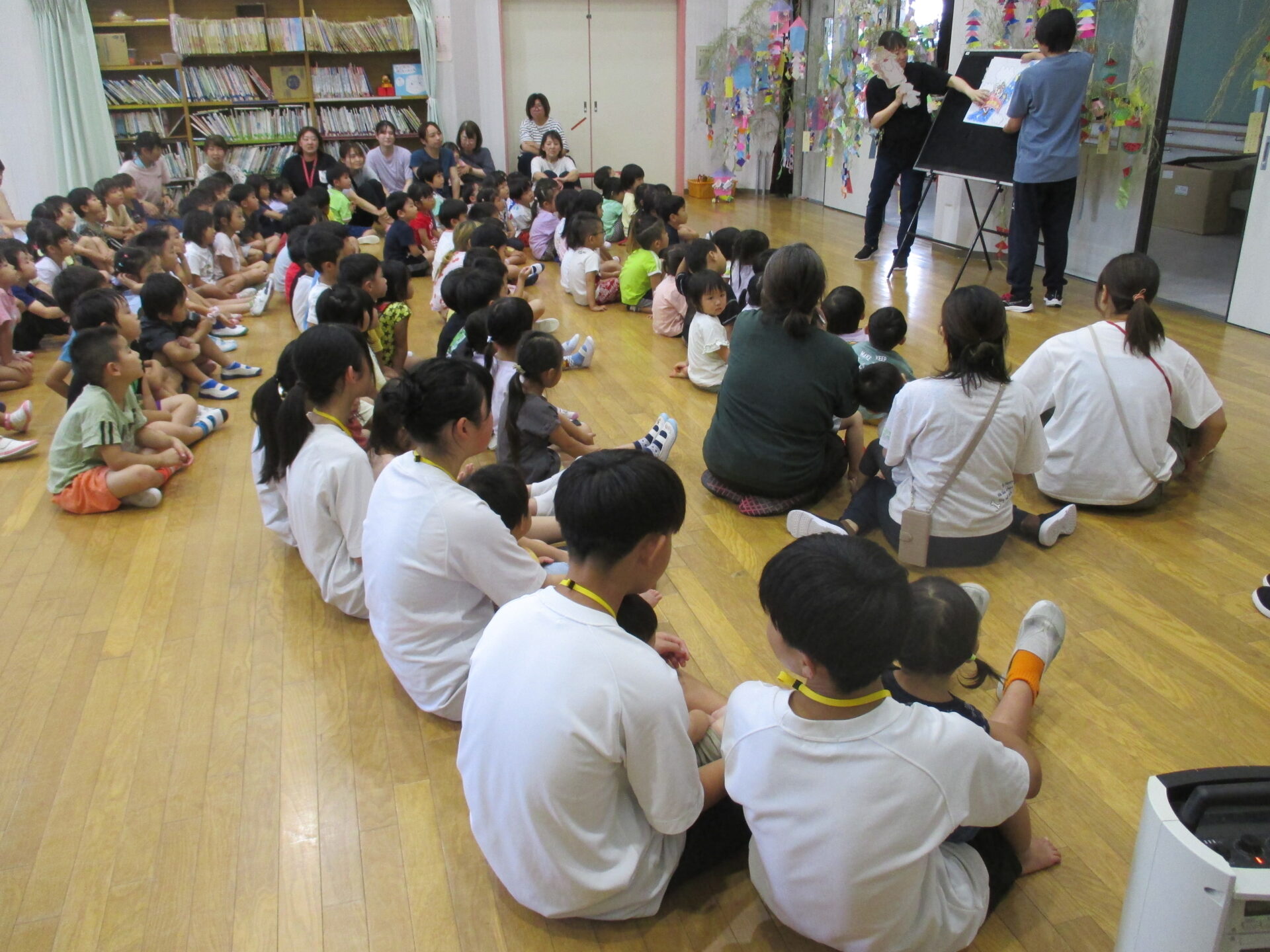 2025.07.07 ブログ 七夕の集い 2025年7月7日(月)七夕の集いがありました。 何が始まるのかな?ドキドキわくわく おりひめさまとひこぼしさまのお話を聞きました。 職場体験中のお兄さんお姉さんに抱っこしてもらってうれしそう。 保育参観でお家の方と一緒に作った笹飾りと短冊おりひめさまとひこぼしさまが会えますように♡みんなの願いが叶いますように♡ 一覧へ戻る