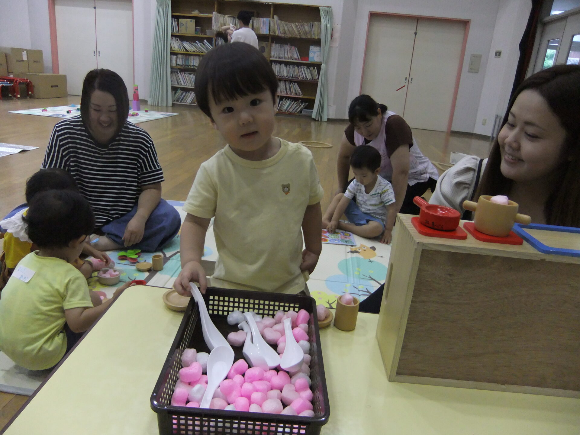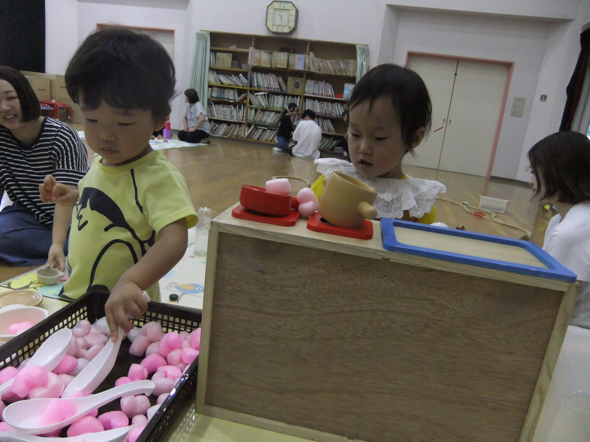 ゆったりとした雰囲気の中で、好きな遊びをじっくり親子で楽しむ様子が見られました。新しい遊びの発見があったり、保護者と保護者がつながるきっかけになったら嬉しく思います。