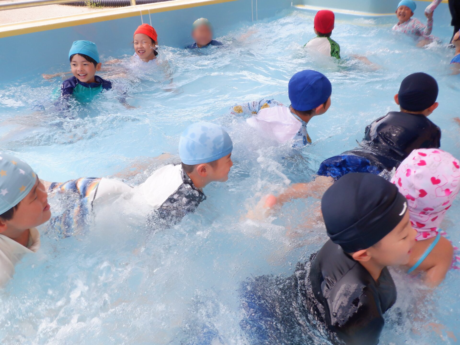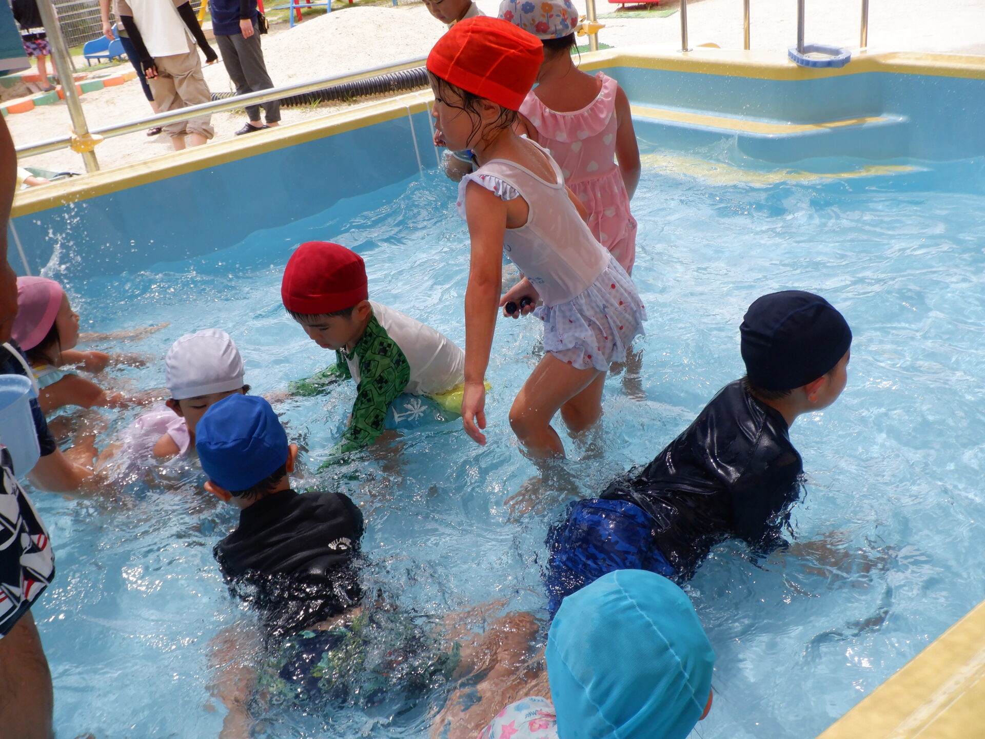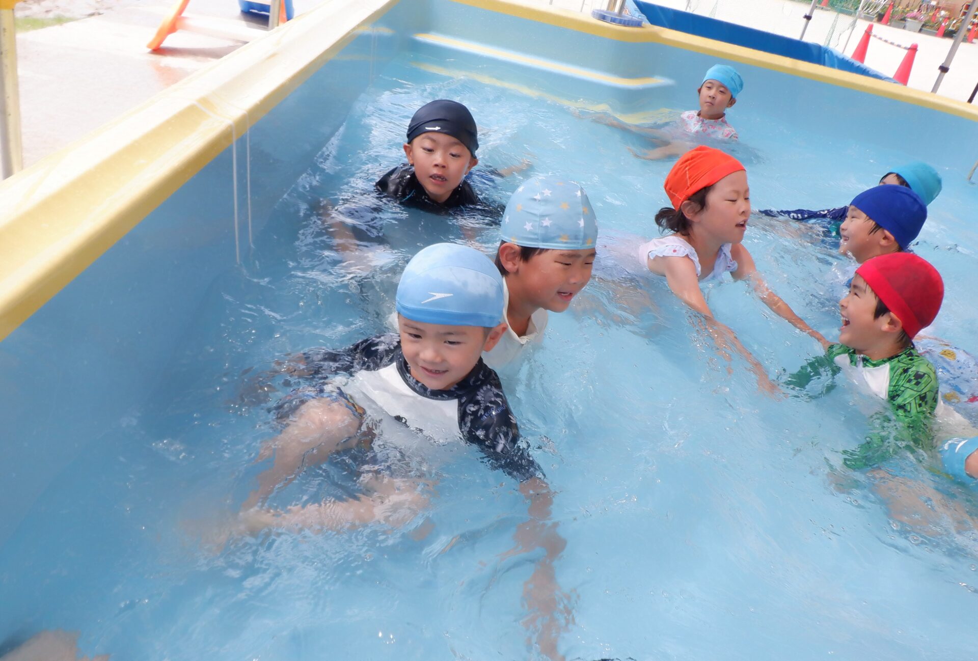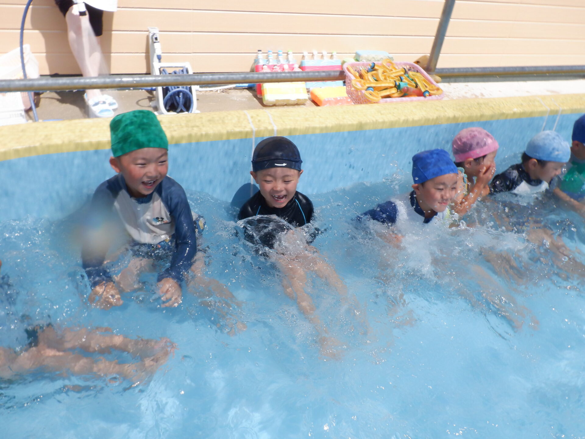 水に親しみ、感触や心地よさを感じる事はもちろん、自分も周りのお友だちも安全に遊べるように約束をしっかり守ろうとするのは、さすが年長さん!