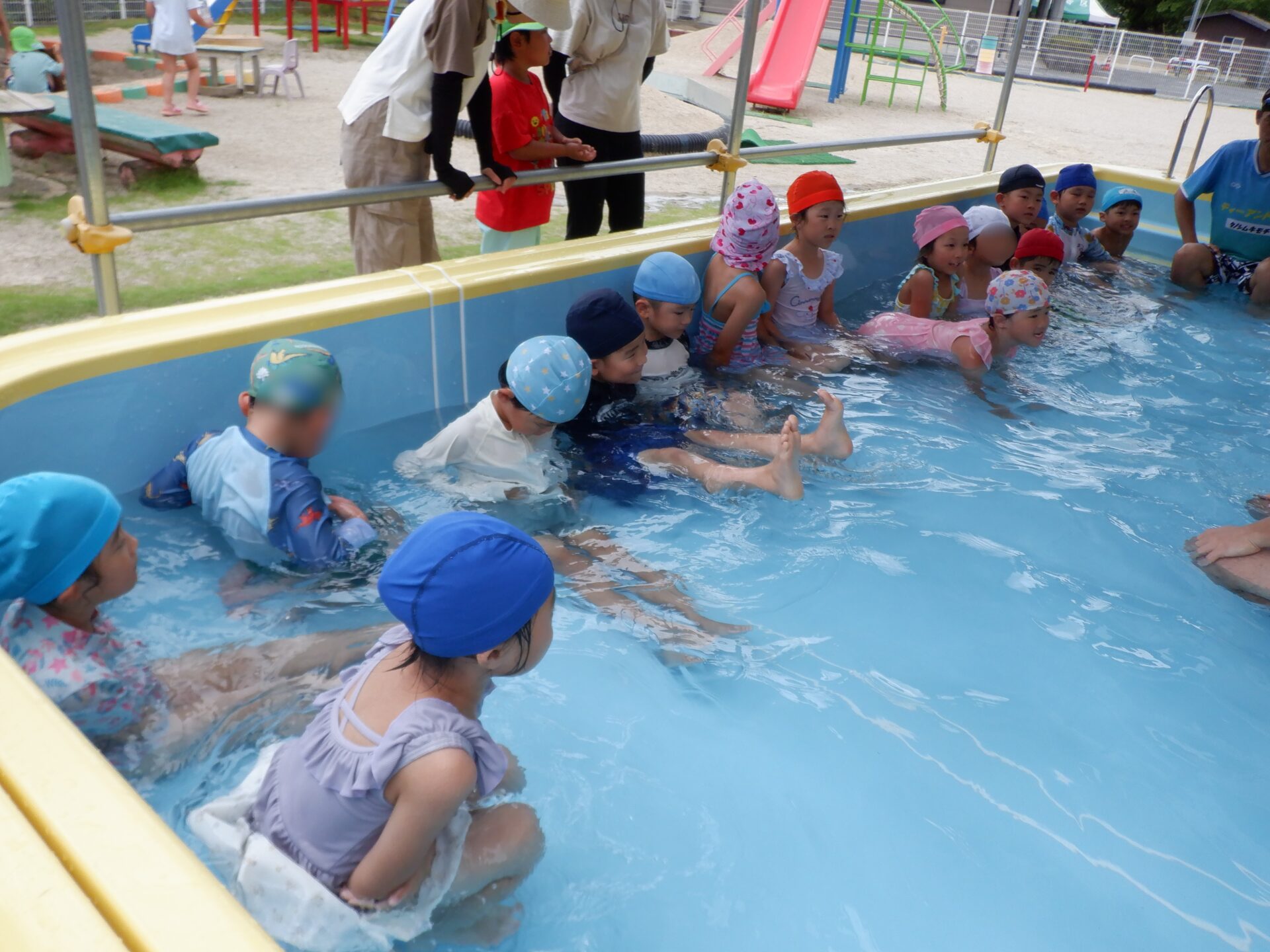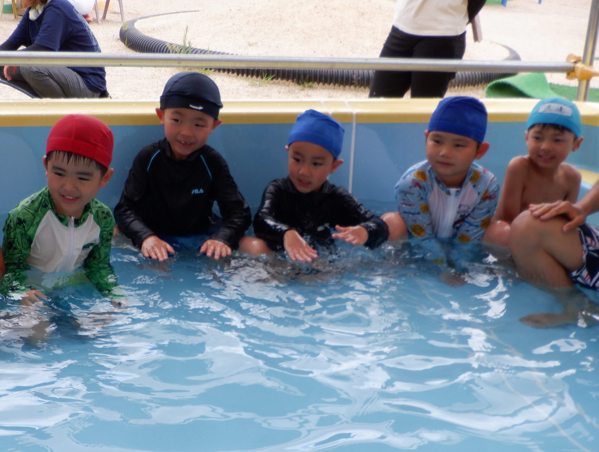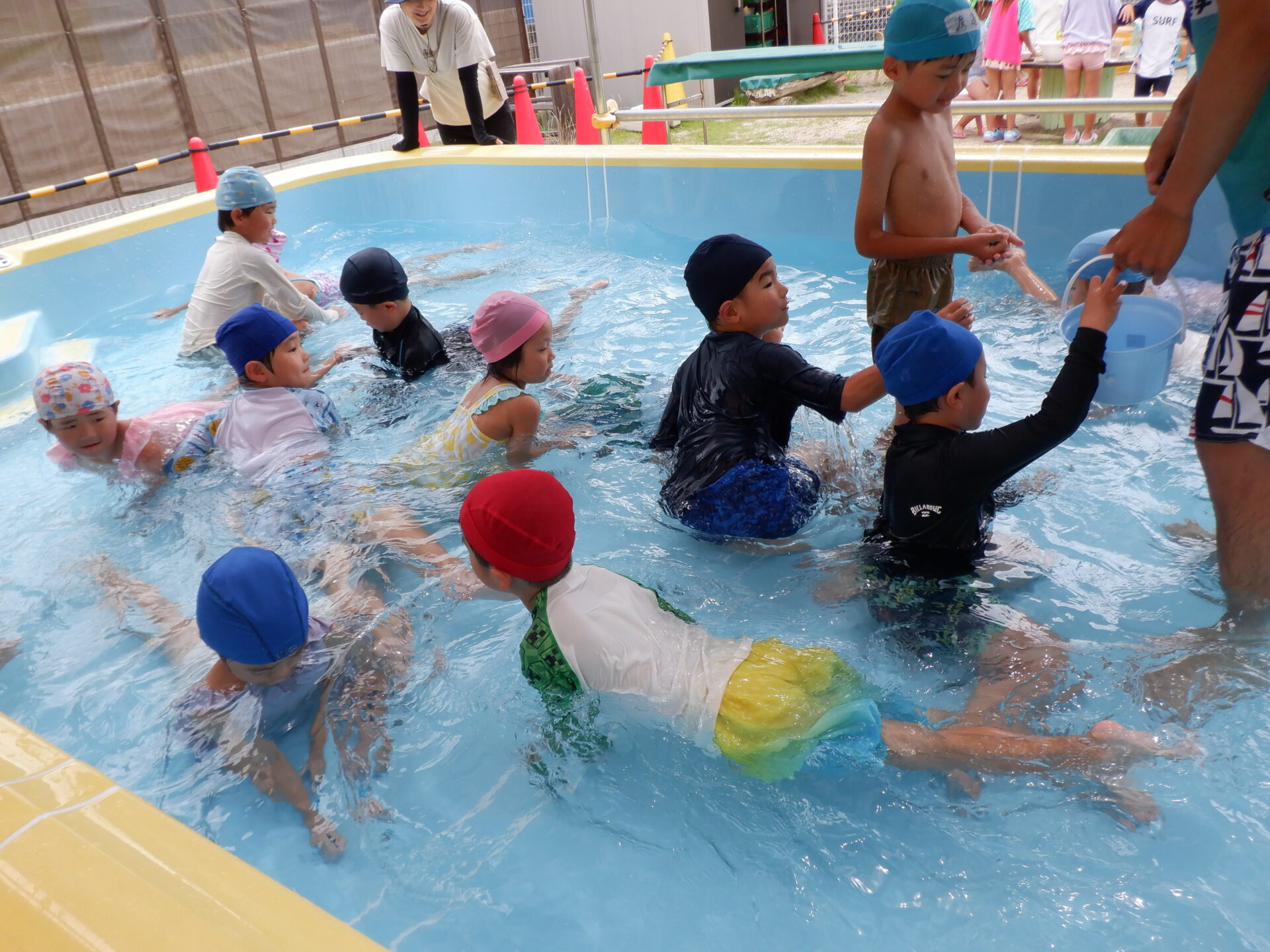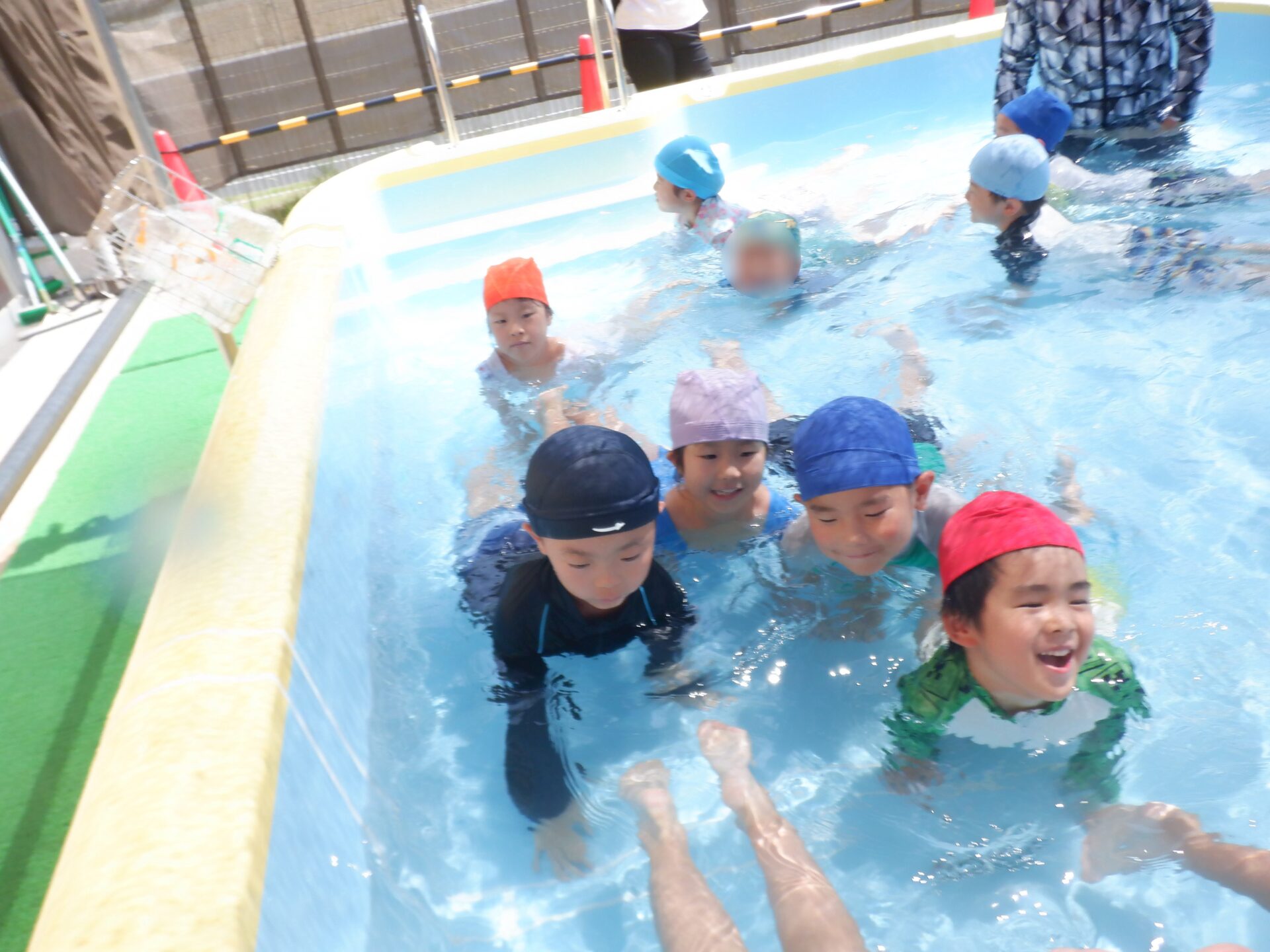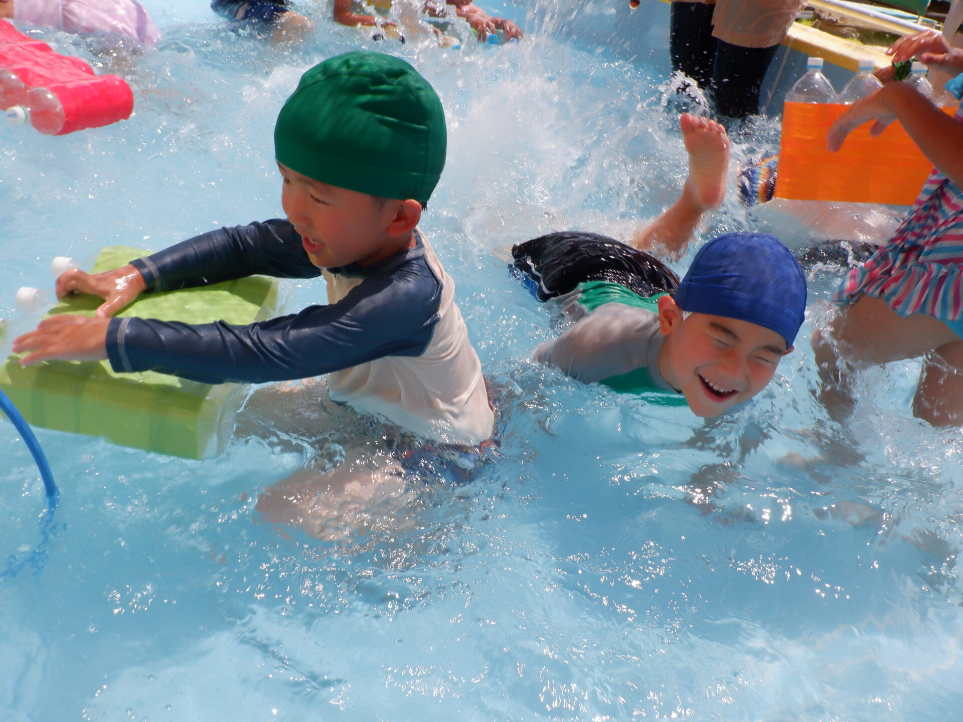 水に親しみ、感触や心地よさを感じる事はもちろん、自分も周りのお友だちも安全に遊べるように約束をしっかり守ろうとするのは、さすが年長さん!