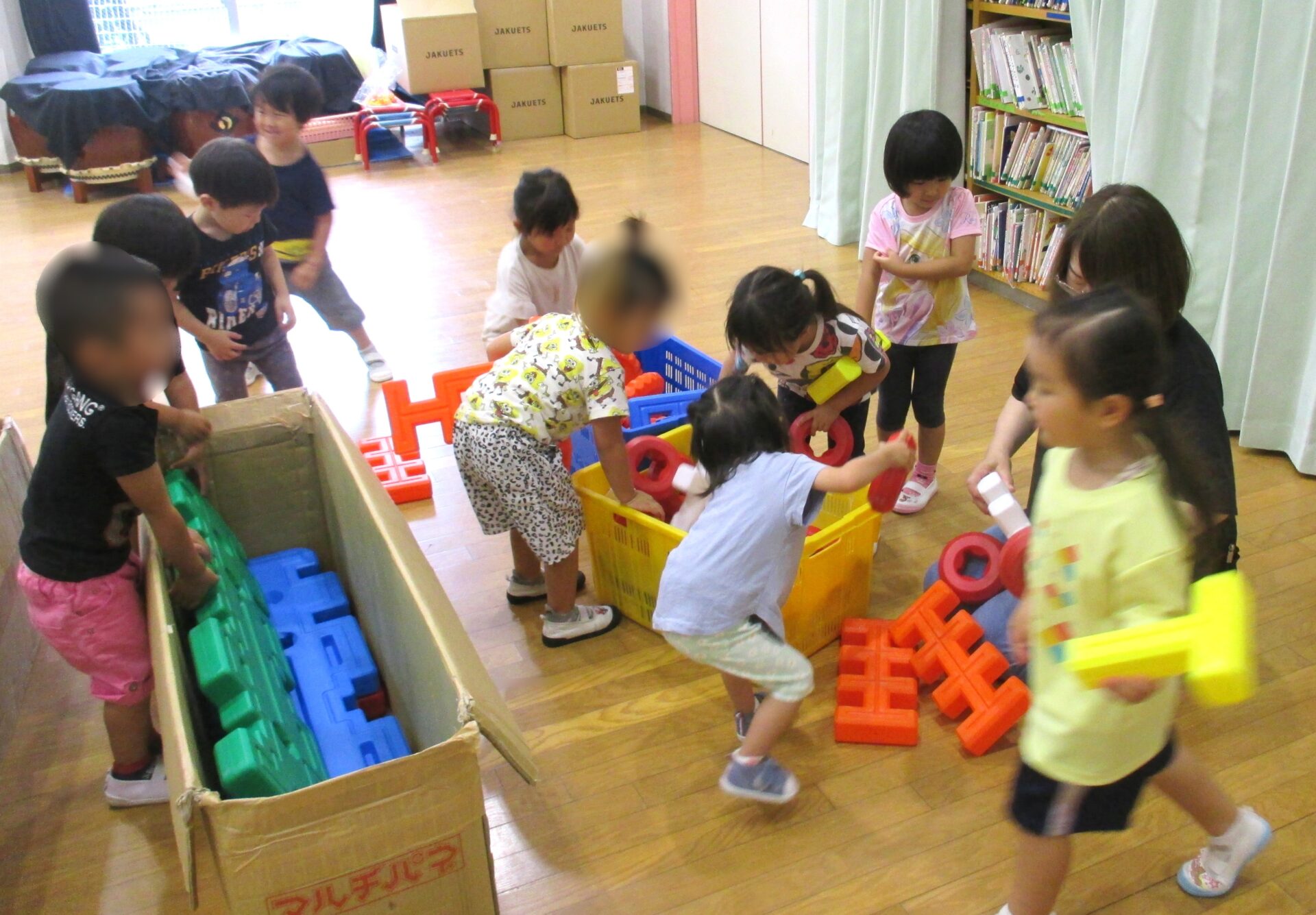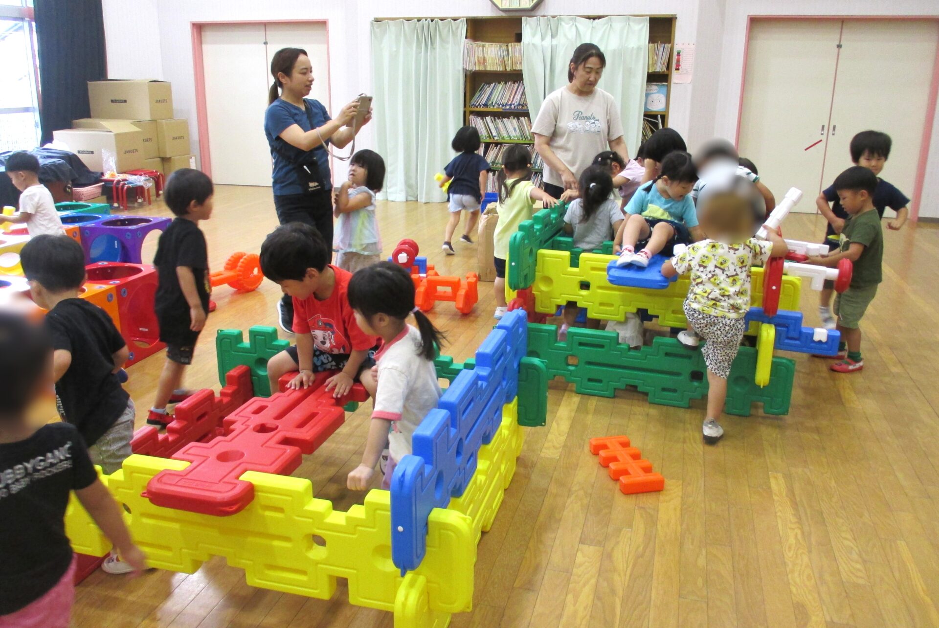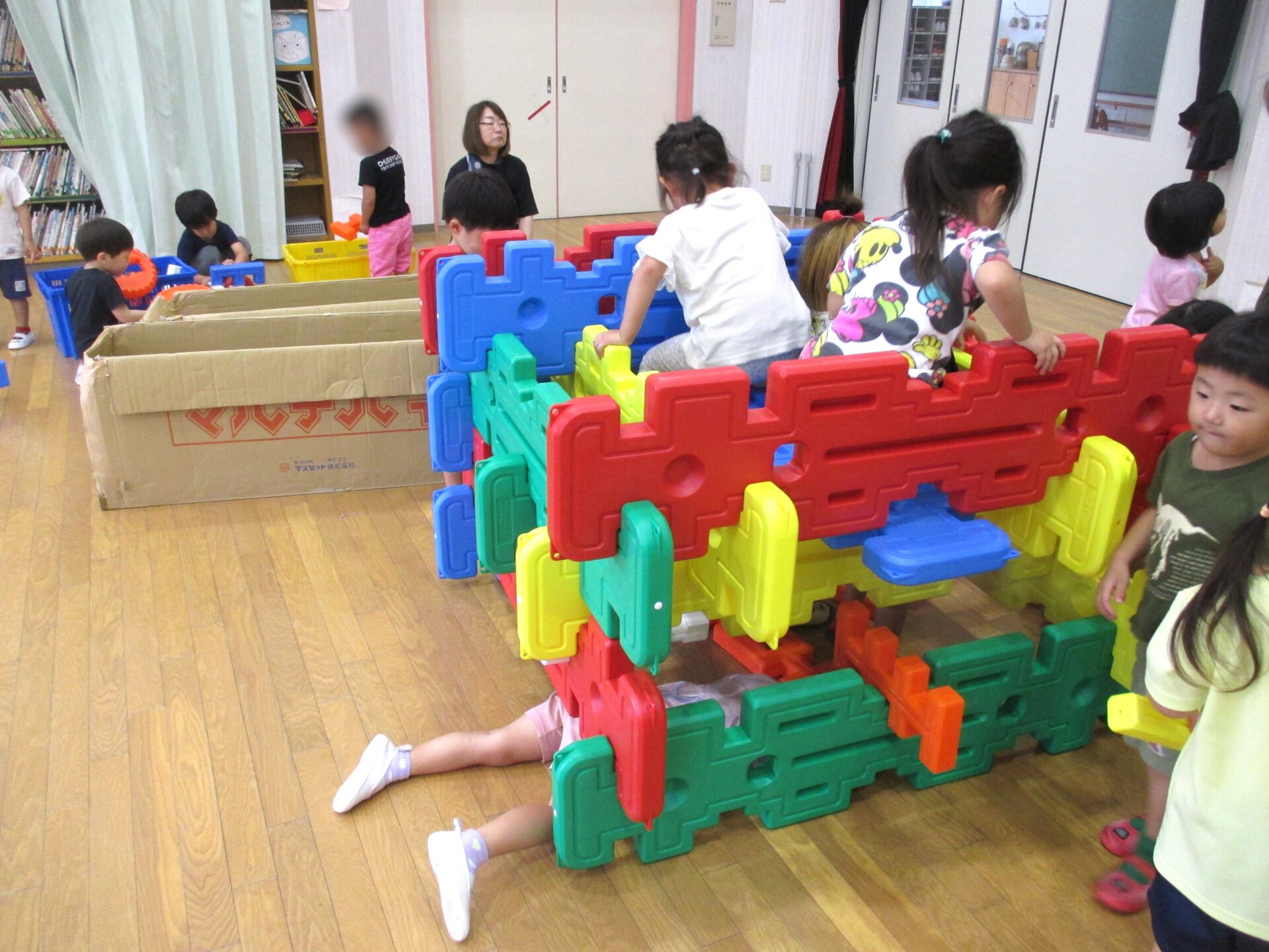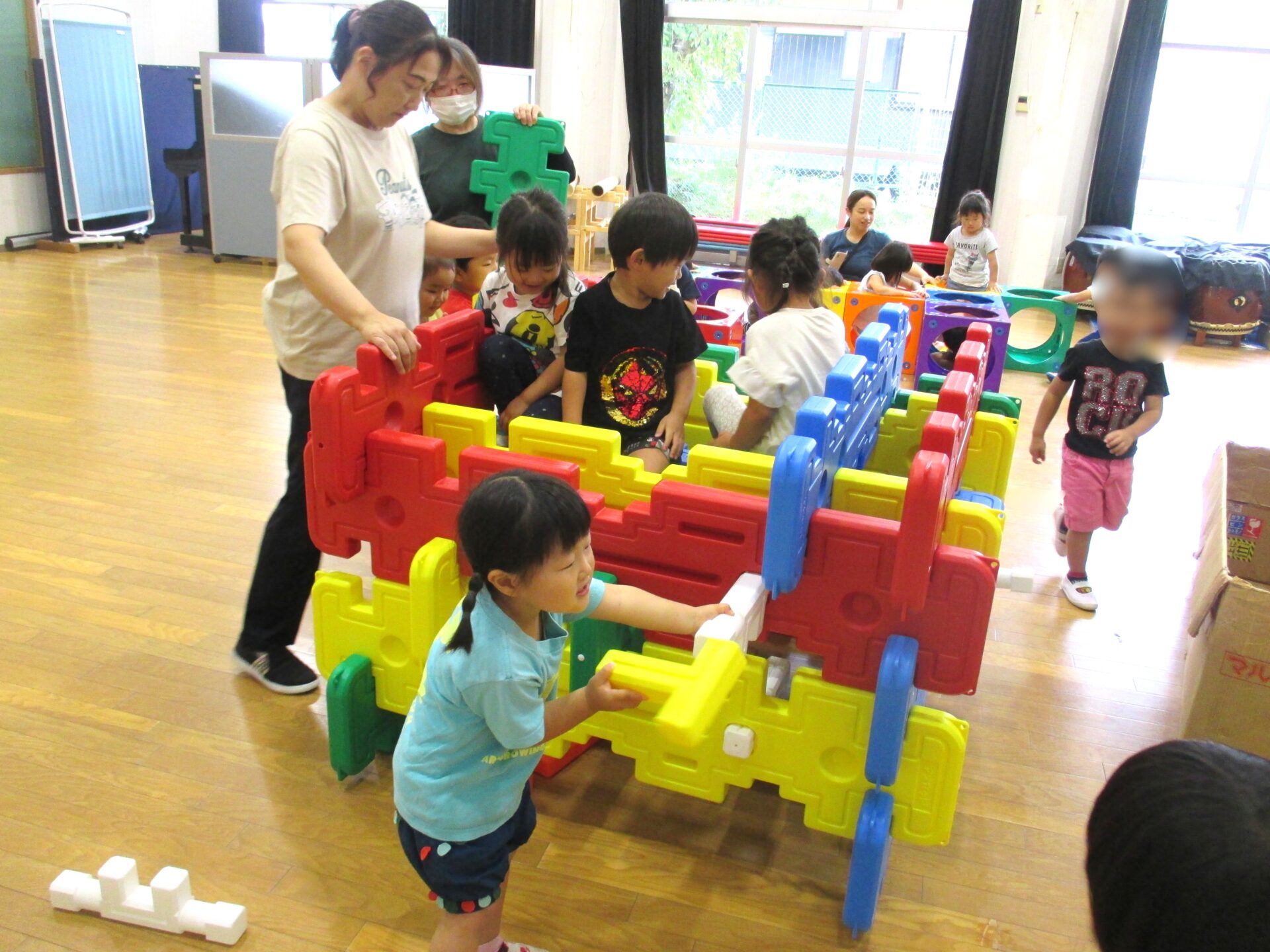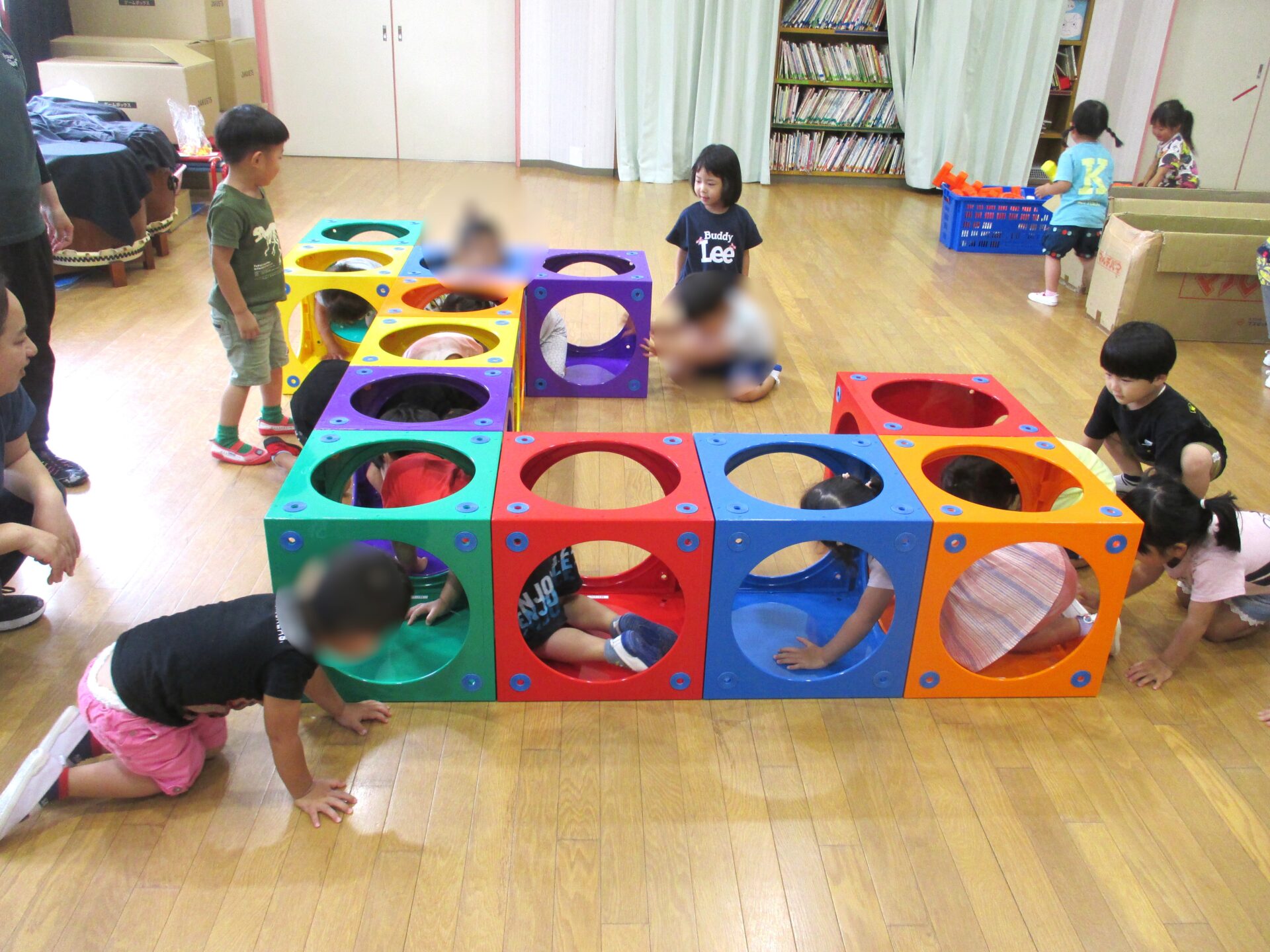2025.08.08 ブログ なにしているのかな?② 「がちゃがちゃどんどん」楽しそうな音が遊戯室から聞こえてきました!! ゲームボックスのトンネル 時々顔を上げて周りを確認(^^) マルチパネ・エイトブロックを使って“コンコン” “カンカン” 「したからも入れるよ」「みててね」 丸い形を棒に通してタイヤを作って車が出来上がりました!! 出来上がったお家にのぼったり、座ったり、違うところから降りたりと繰り返し楽しむ3歳児さんでした。みんなで協力していい物が出来たね!! 一覧へ戻る