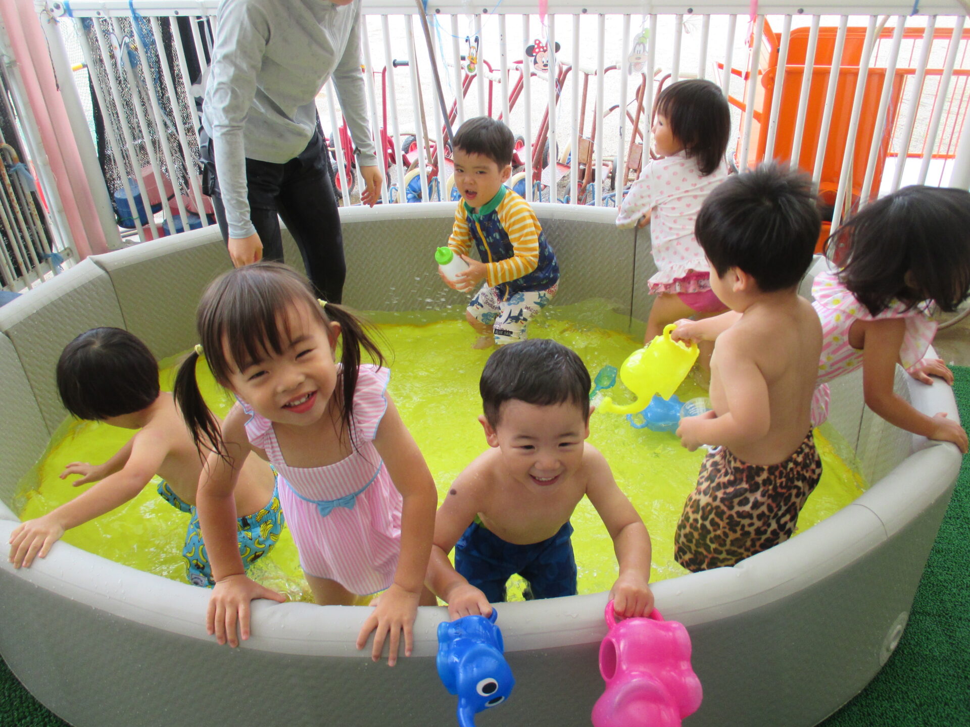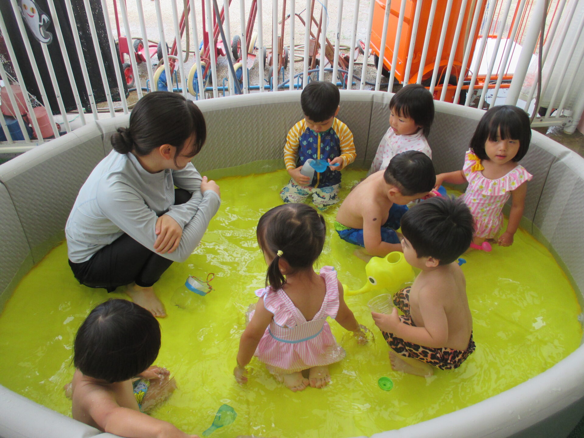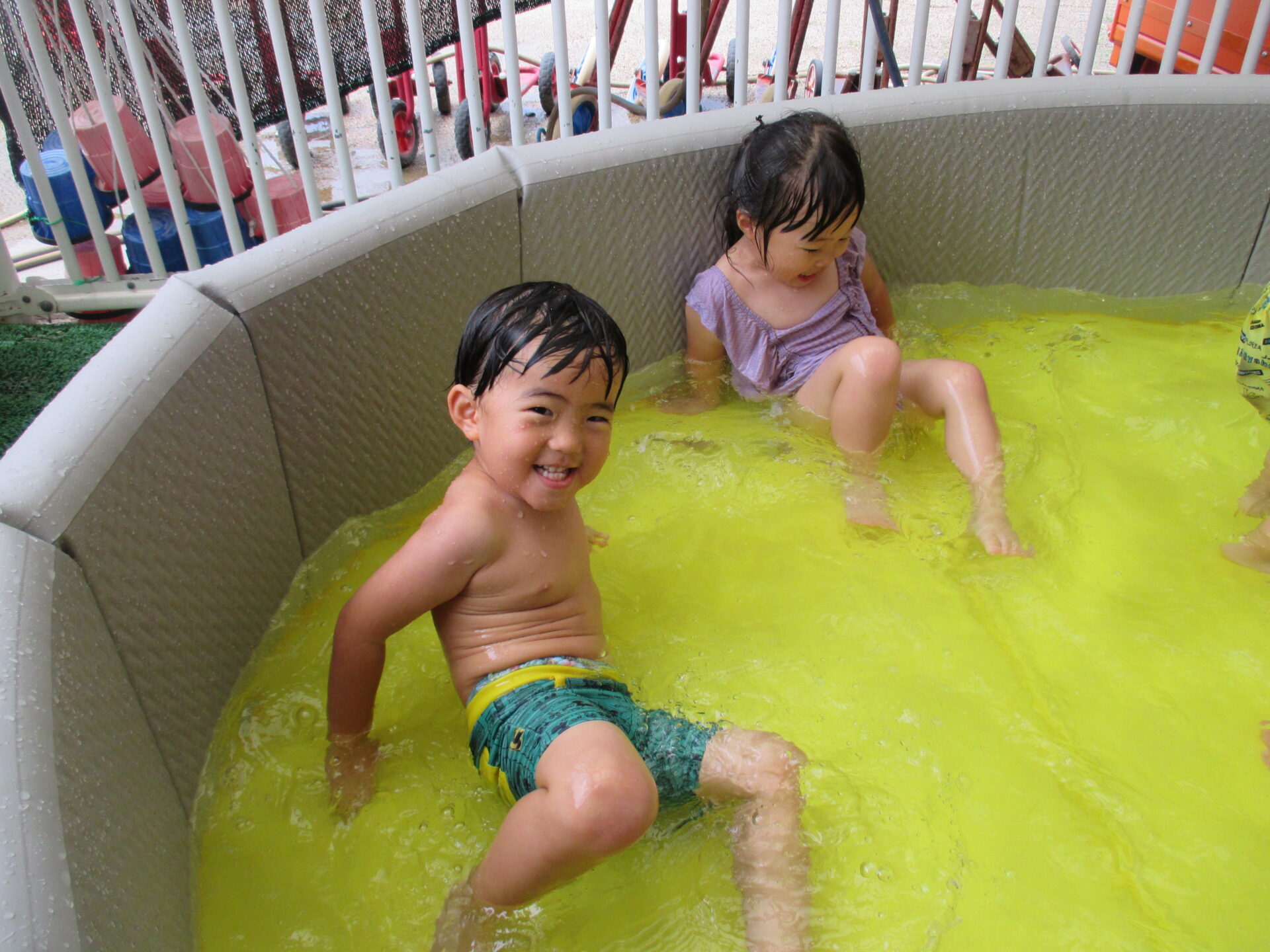 2025.08.18 ブログ プールで水遊び ~2歳児 りんご組~ プールの中で座ってみたよ!冷たくて気持ちいいね♪ 足で水をバシャバシャ!! 「ジャー」お水のシャワー気持ちいいね!! ジャンプジャンプどこまでとべるかな? 座って足でバシャバシャバシャ!!みんなですると、とっても楽しいね これからの水遊びも楽しみですね♪ 一覧へ戻る