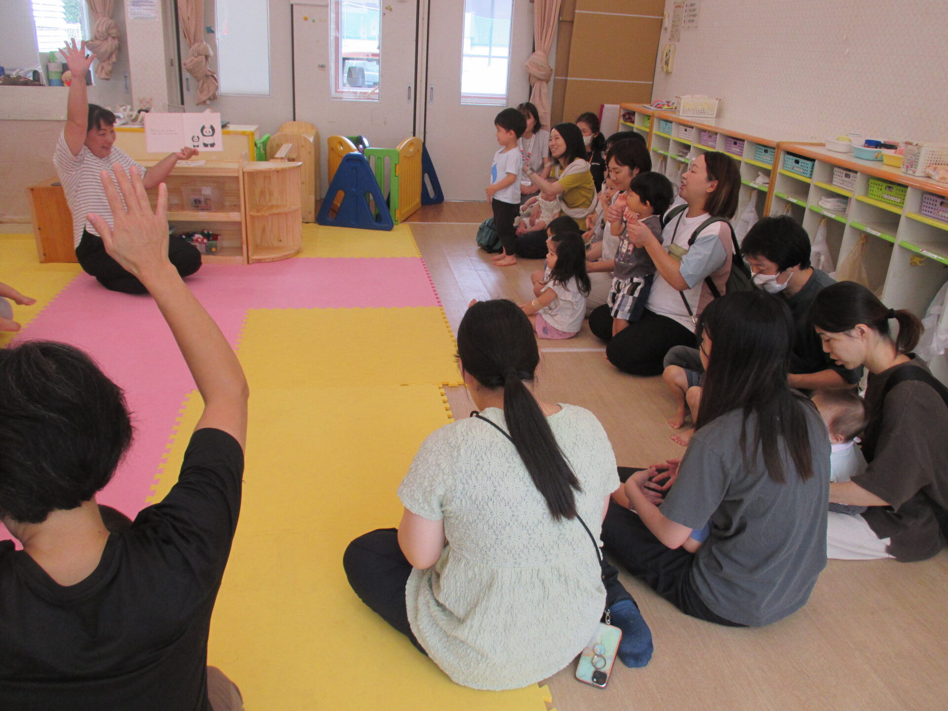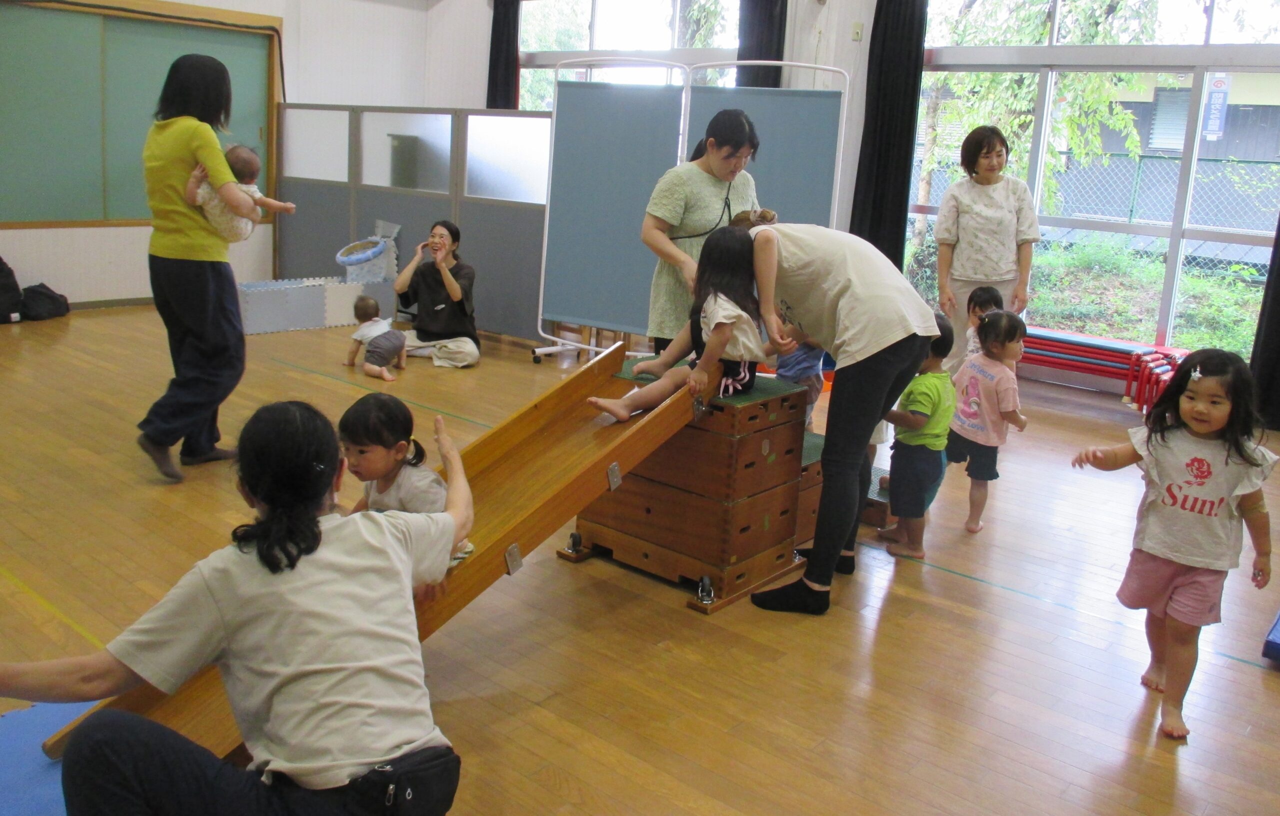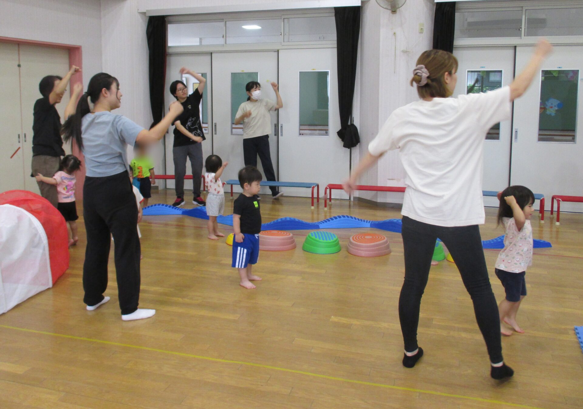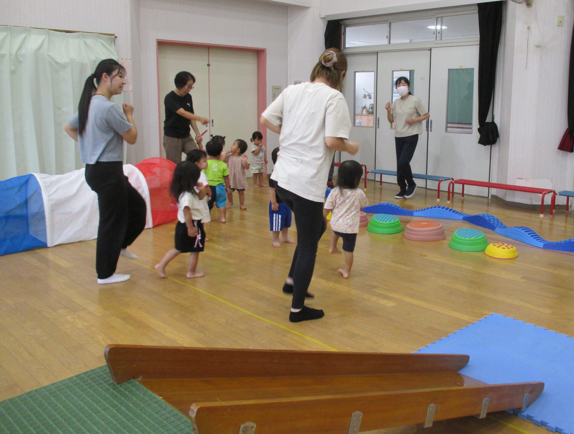 2025.09.18 ブログ のびのびくじら ~うんどうあそび~ 9月11日 朝の会 お名前呼ばれたらお返事できるかな? 『めっちゃ元気たいそう』 いち に いち に 歩こう! 今日は、ばななぐみさんも一緒に。 体操の後は好きな運動遊びを楽しみました! トンネルくぐったり… 鉄棒にぶら下がったり、乗せてもらったり… 巧技台の滑り台を「シュー」と滑って楽しいね! ボールを持って「シュート!!」出来るかな? バランスストーンやウェーブバランスにもチャレンジしたよ。 さくらんぼ組さんも遊びにきてくれました。 今日のお話は「パンダ おやこたいそう」 絵本に合わせて身体を動かして遊びました! 最後に、手作りメダルをお家の方から、かけてもらいにこにこでした。 一覧へ戻る