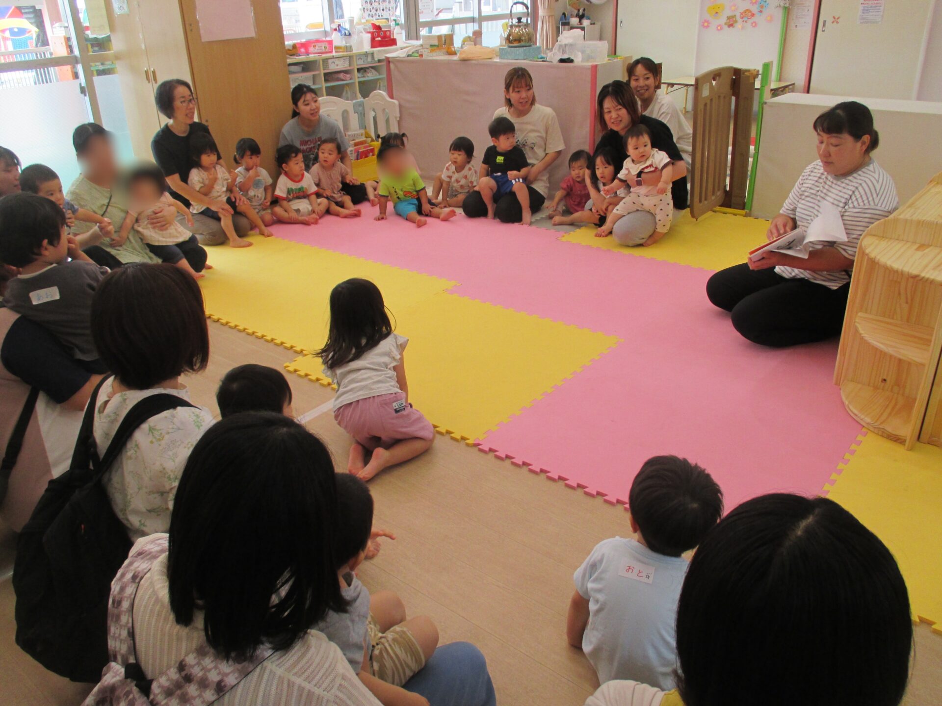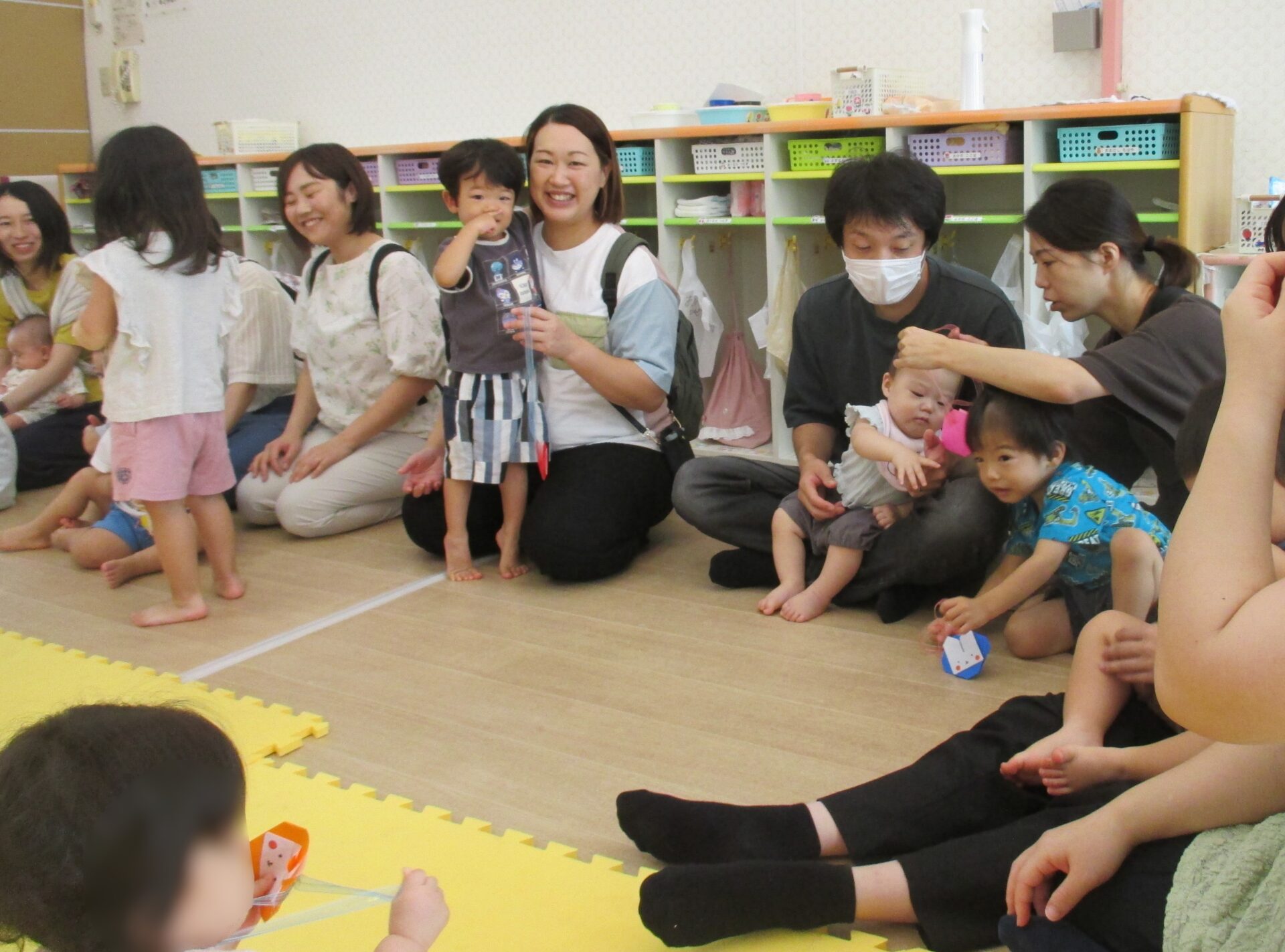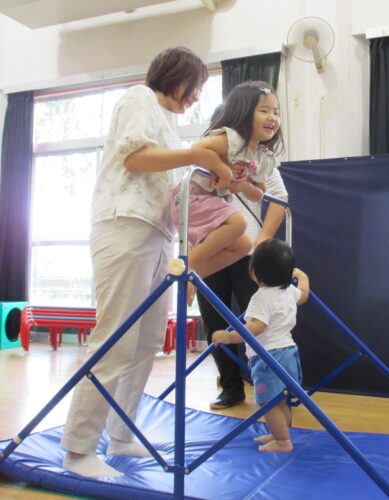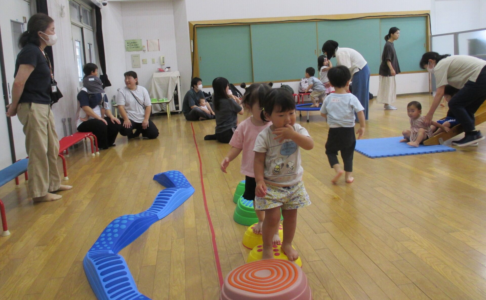 2025.09.18 ブログ のびのびくじら ~うんどうあそび~ 9月11日 朝の会 お名前呼ばれたらお返事できるかな? 『めっちゃ元気たいそう』 いち に いち に 歩こう! 今日は、ばななぐみさんも一緒に。 体操の後は好きな運動遊びを楽しみました! トンネルくぐったり… 鉄棒にぶら下がったり、乗せてもらったり… 巧技台の滑り台を「シュー」と滑って楽しいね! ボールを持って「シュート!!」出来るかな? バランスストーンやウェーブバランスにもチャレンジしたよ。 さくらんぼ組さんも遊びにきてくれました。 今日のお話は「パンダ おやこたいそう」 絵本に合わせて身体を動かして遊びました! 最後に、手作りメダルをお家の方から、かけてもらいにこにこでした。 一覧へ戻る