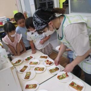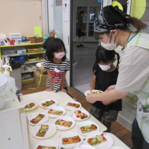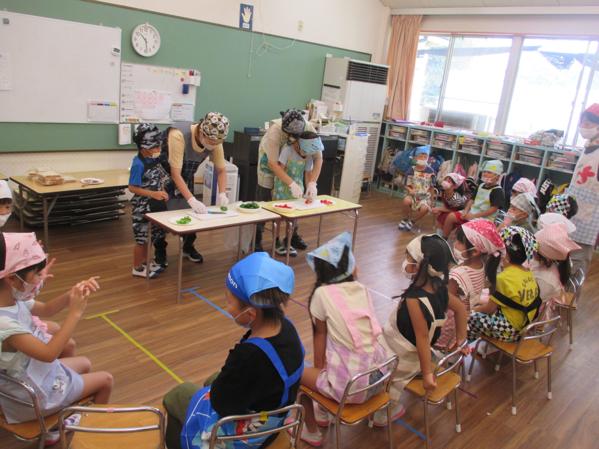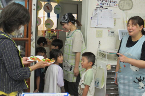 「ピーマンのにおい」「トマトのにおい」と周りで見ている子どもたちも嬉しそう