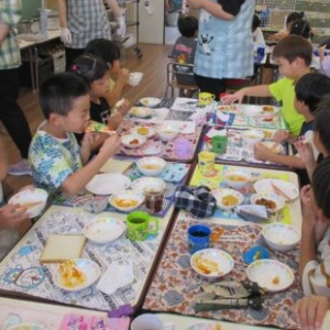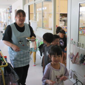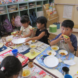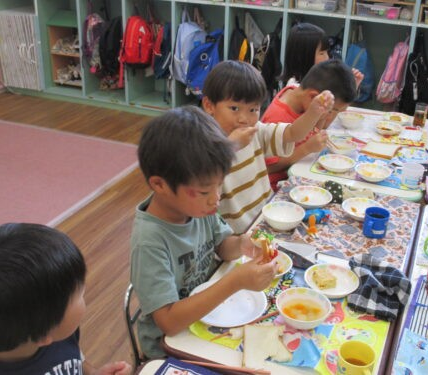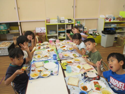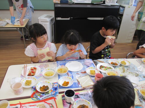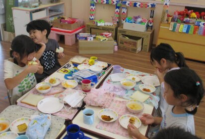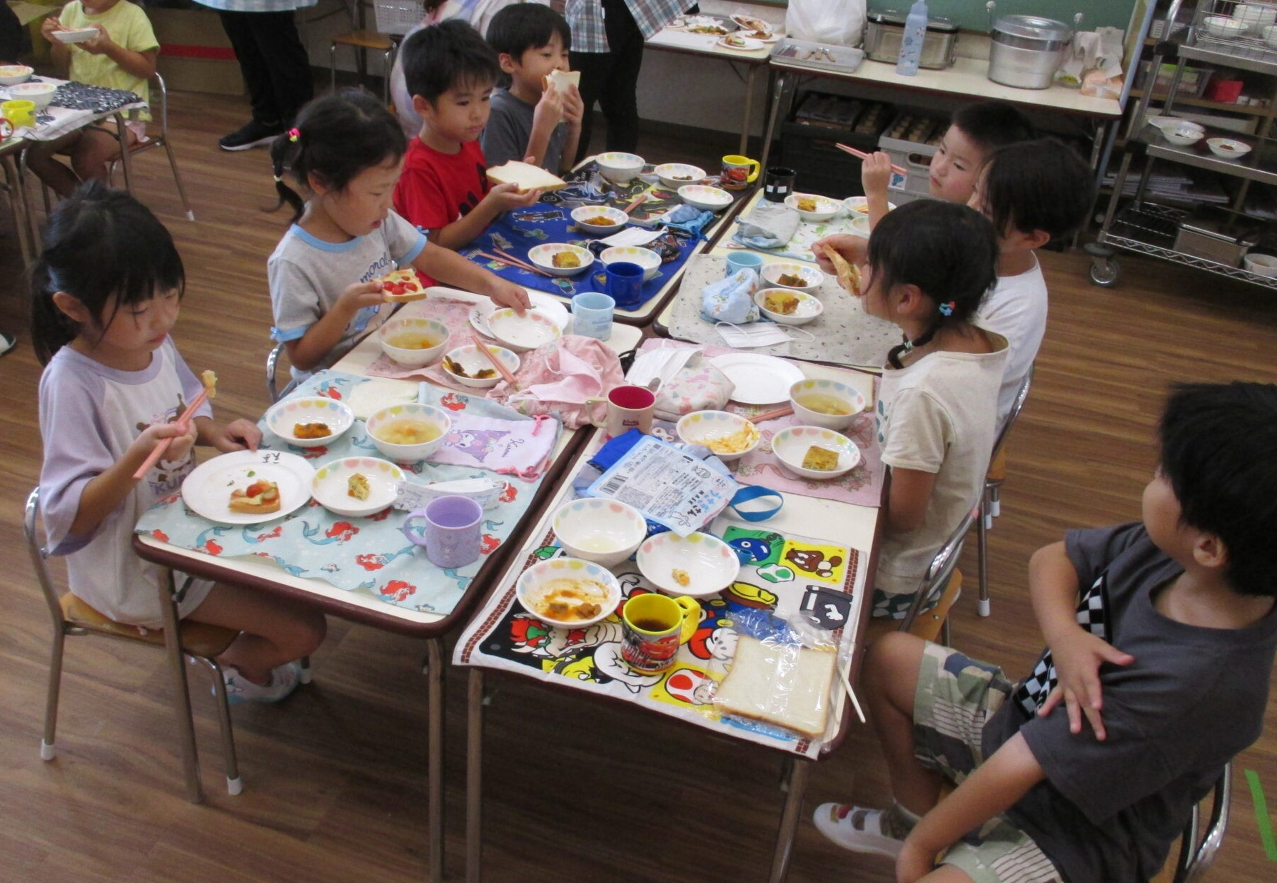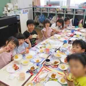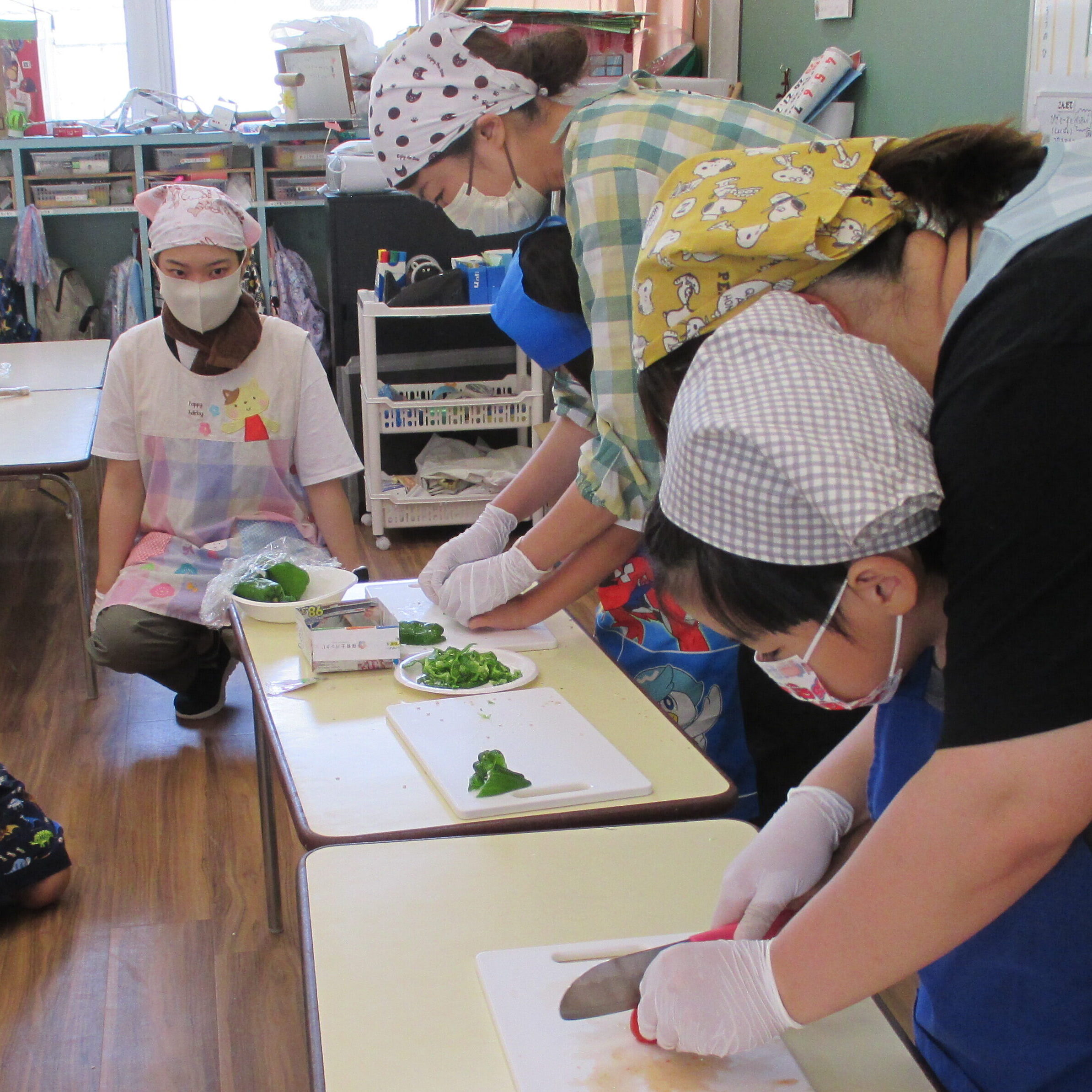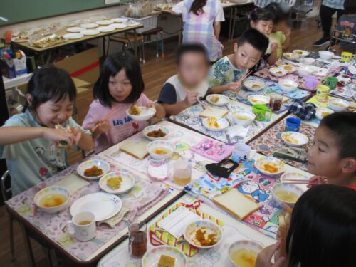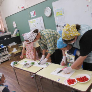 玉ねぎ・ウインナーは給食の先生が用意してくれました
