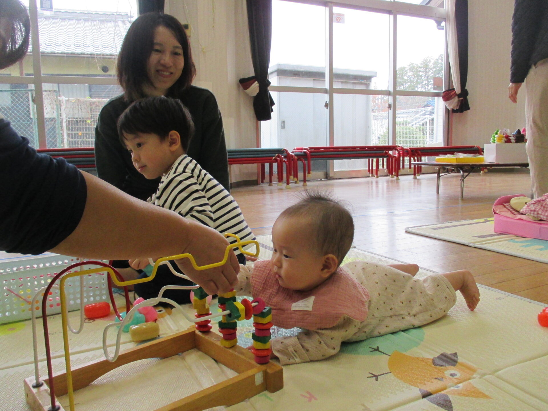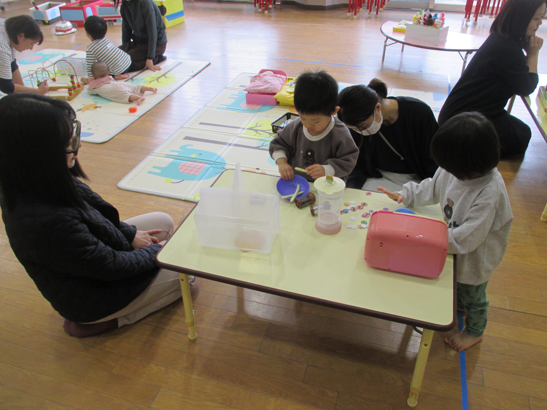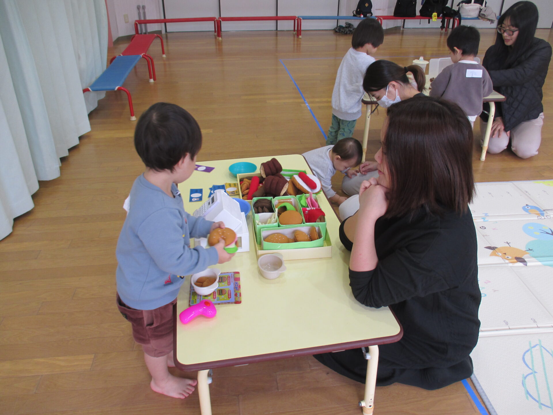 ゆったりとした雰囲気の中で好きな遊びを楽しみ、笑顔いっぱいでした。お家の方と一緒に遊ぶことで安心して様々な遊びにチャレンジ出来ます。これからも親子で過ごす素敵な時間の一つになれたらいいなと思います。