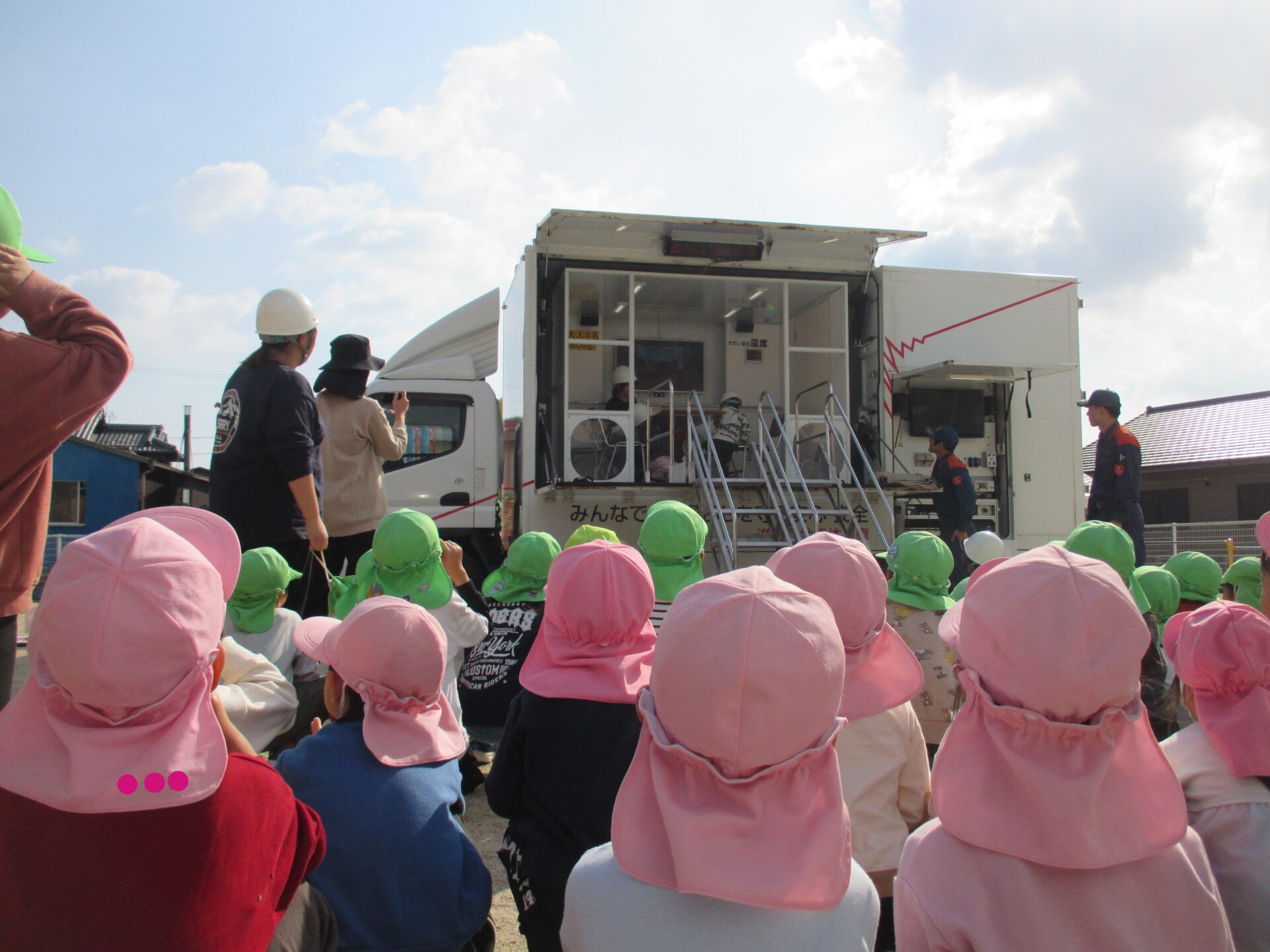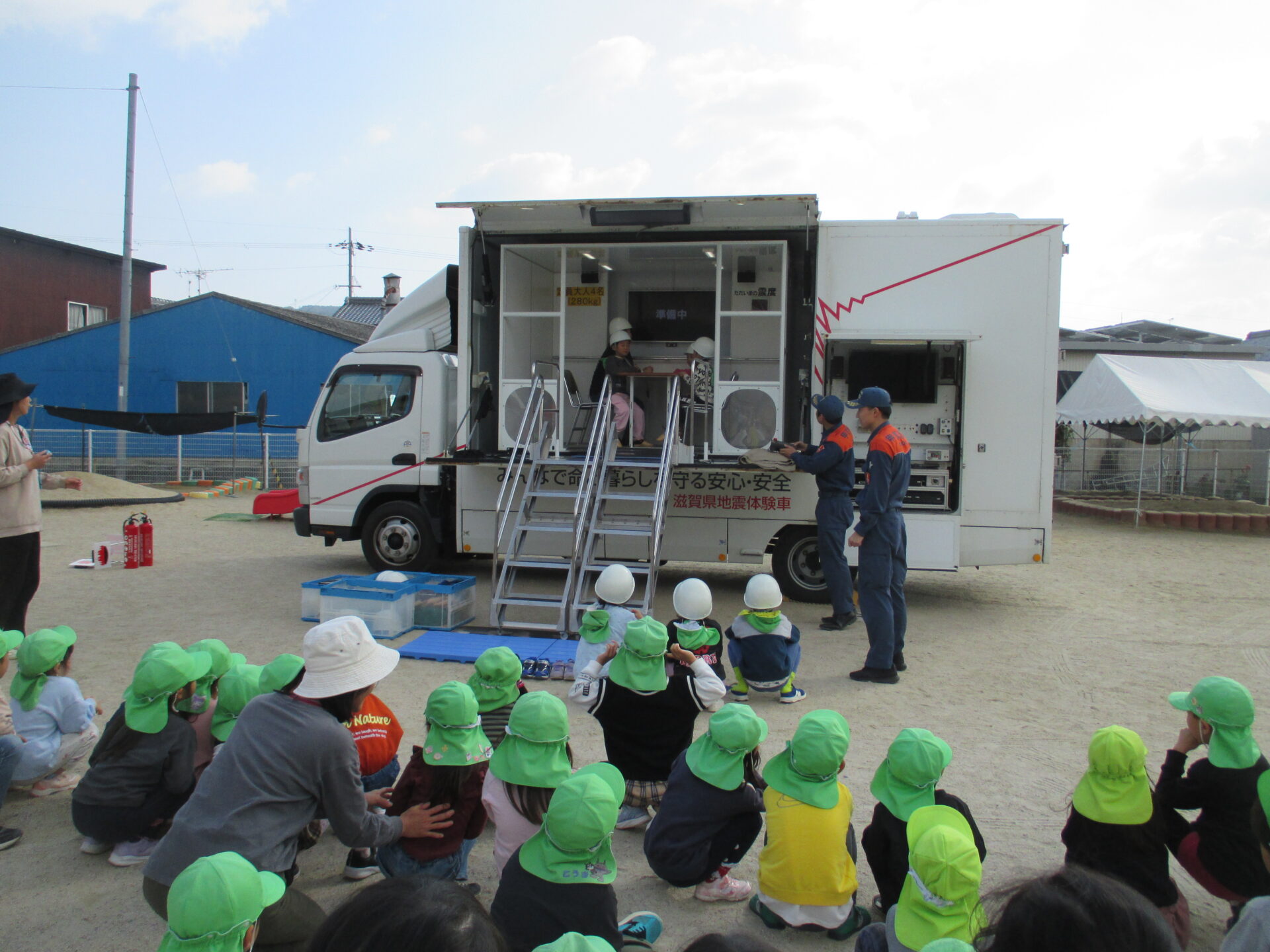 5歳児は起震車体験もしました。地震が起きた時の貴重な体験が出来ました。