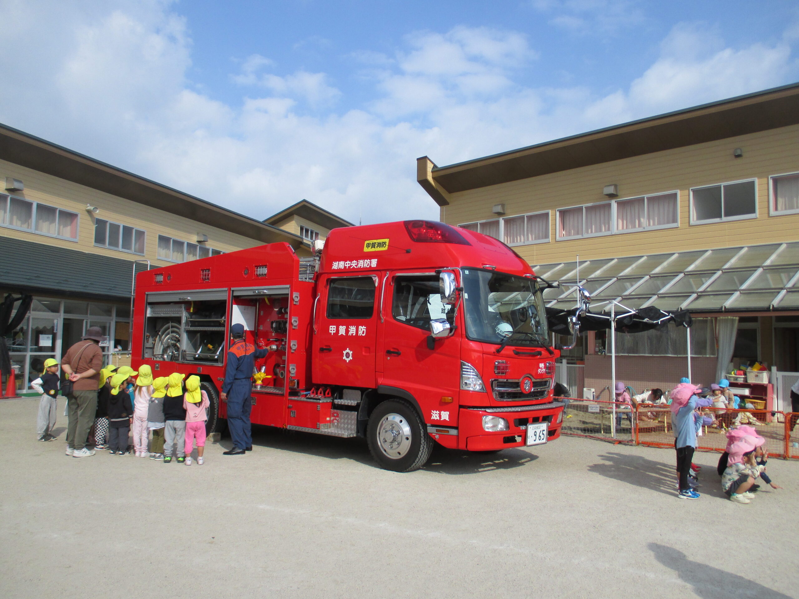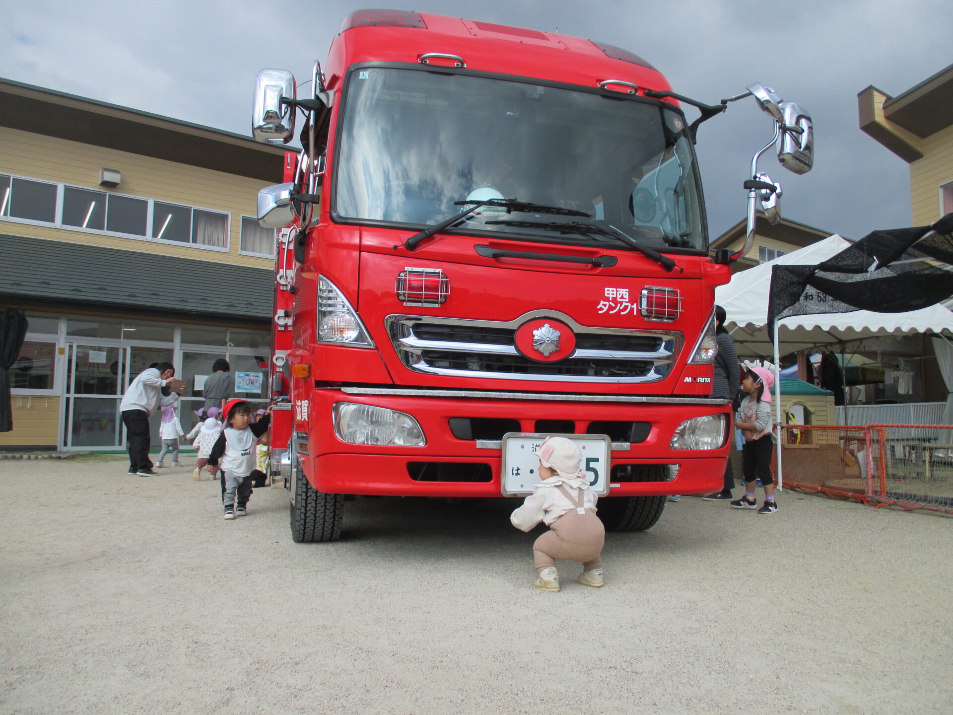 消防車の説明に興味津々の子どもたちでした。