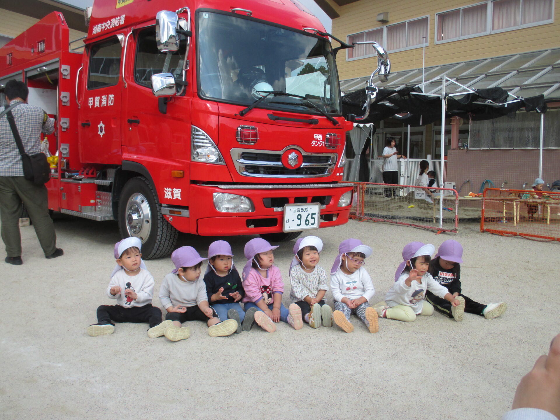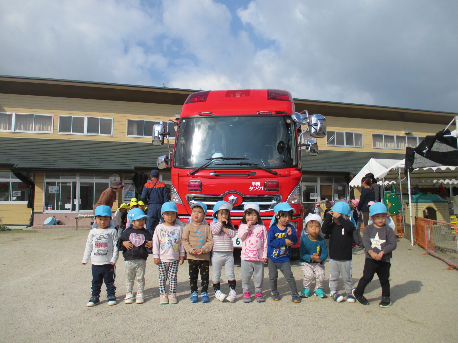 大きな消防車と一緒に集合写真を撮ったり、
