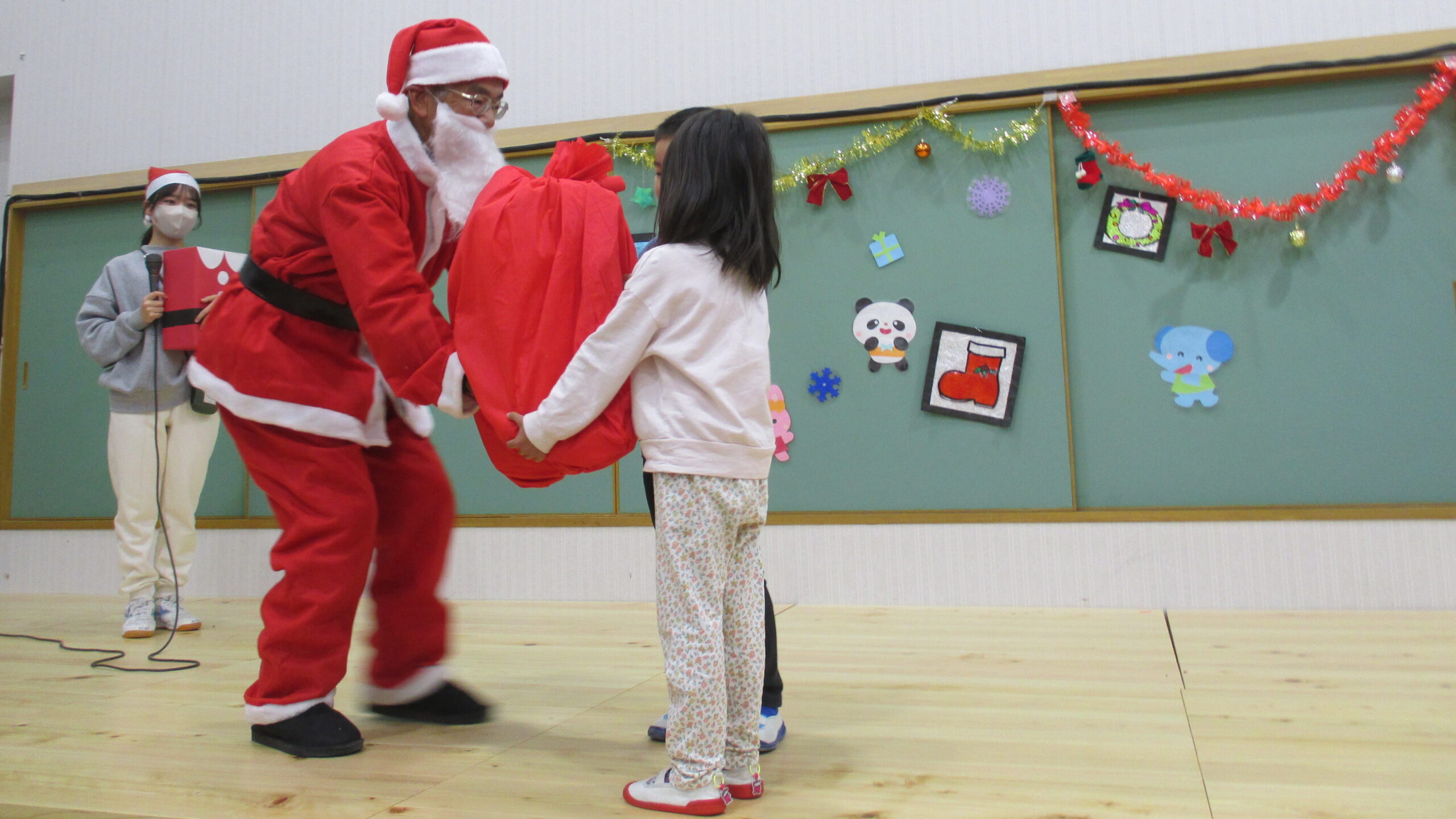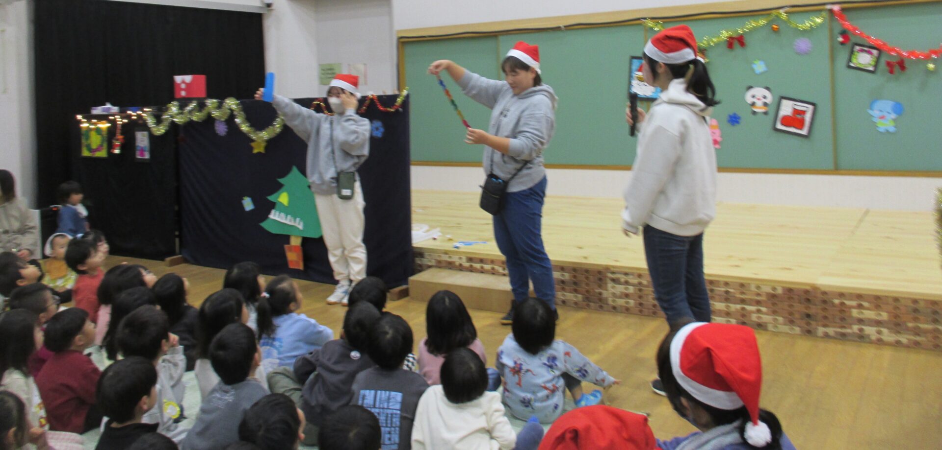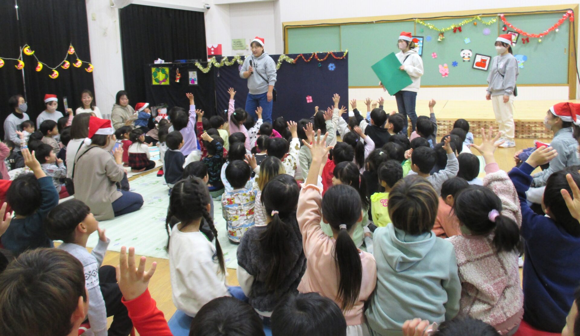 クリスマス前に菩提寺くじらこども園でお楽しみ会がありました。遊戯室にこどもたちがわくわくドキドキで集まってきます。どんな楽しいことが待っているのでしょうか・・・