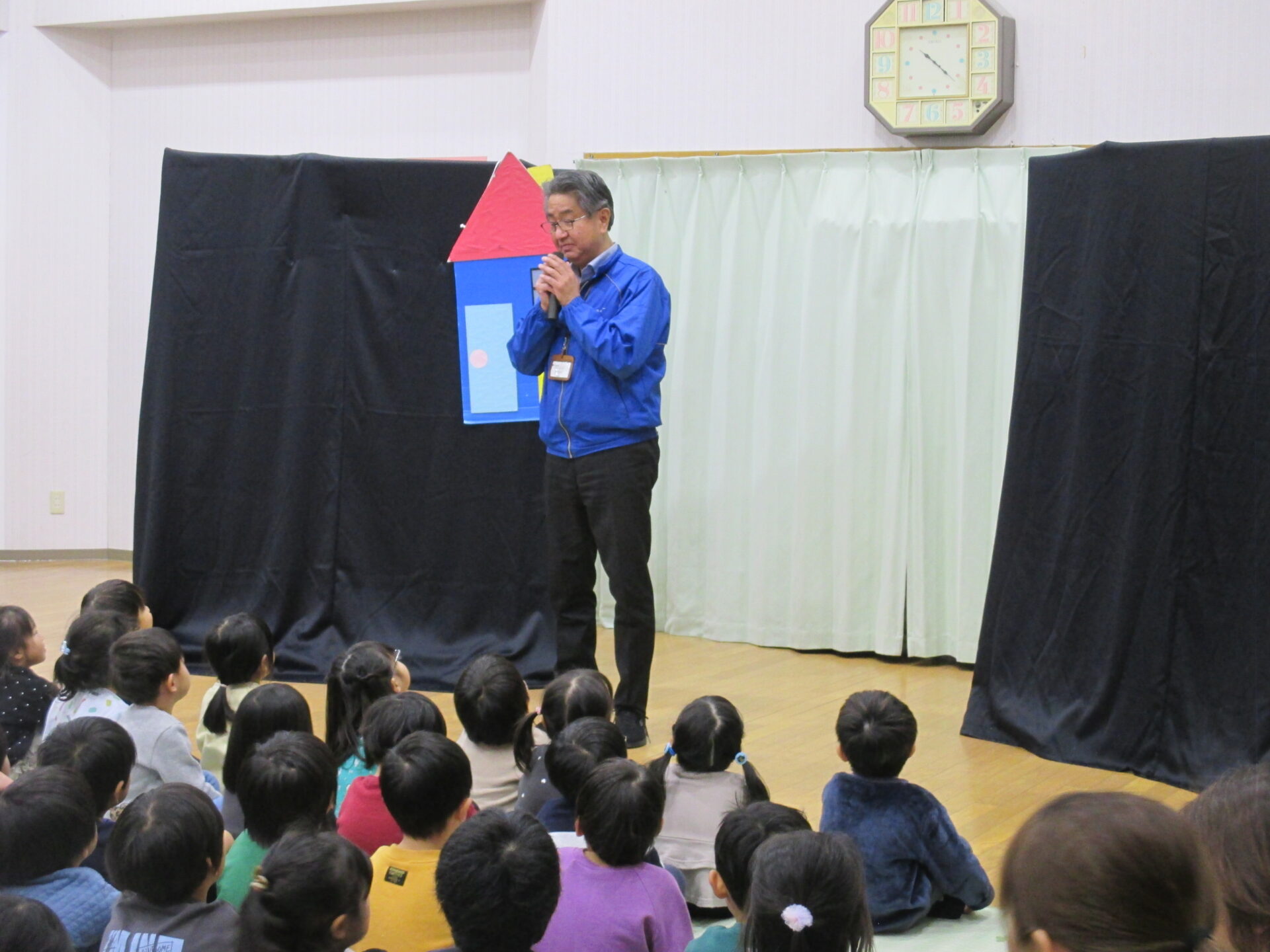 湖南市少年センターの少年補導委員さんが来られ、人形劇を見せてくれました。