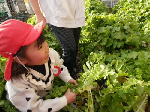 [うーんっしょ!」力いっぱい引っ張ってもなかなか抜けない大根がたくさんでした。
