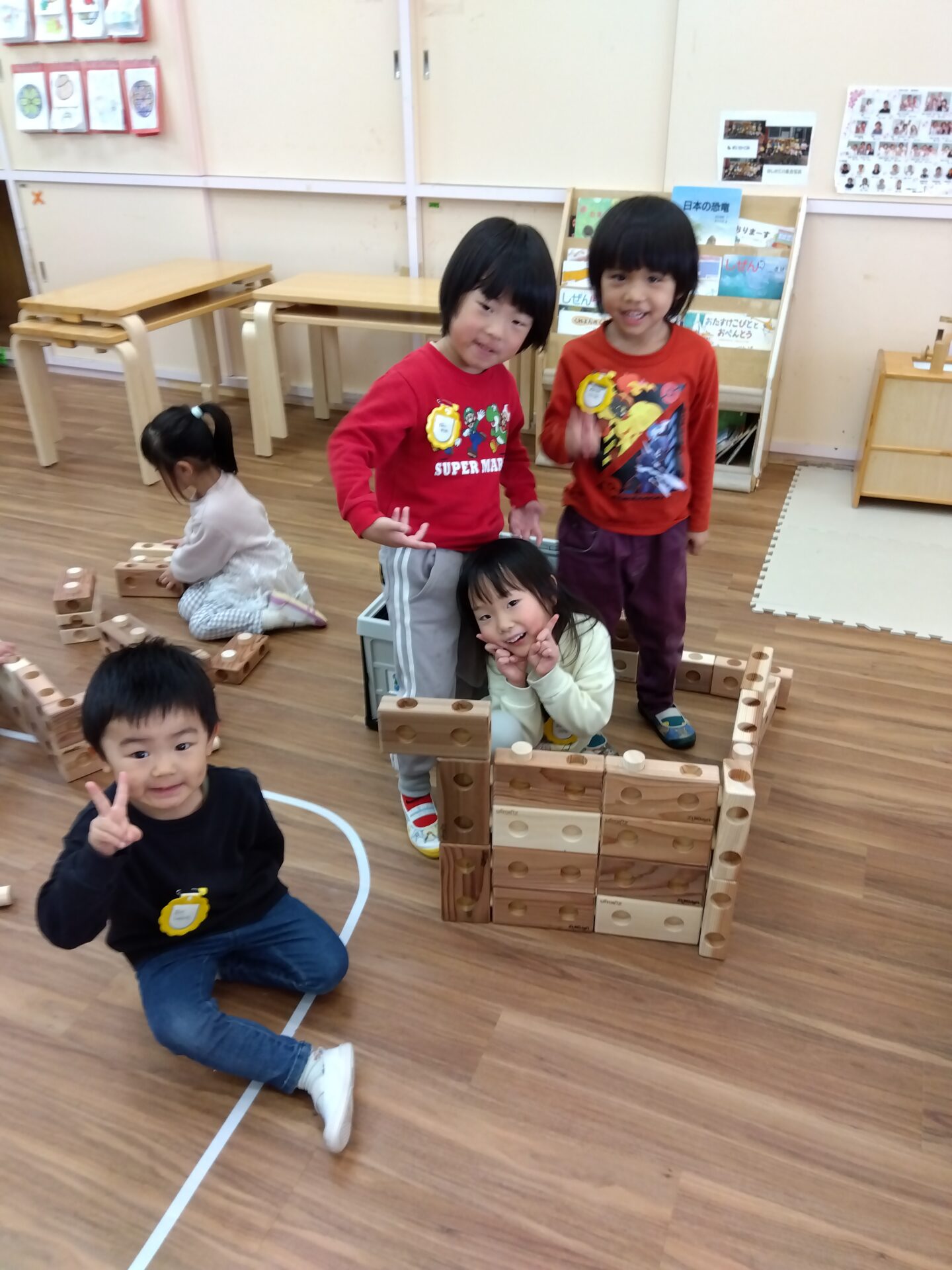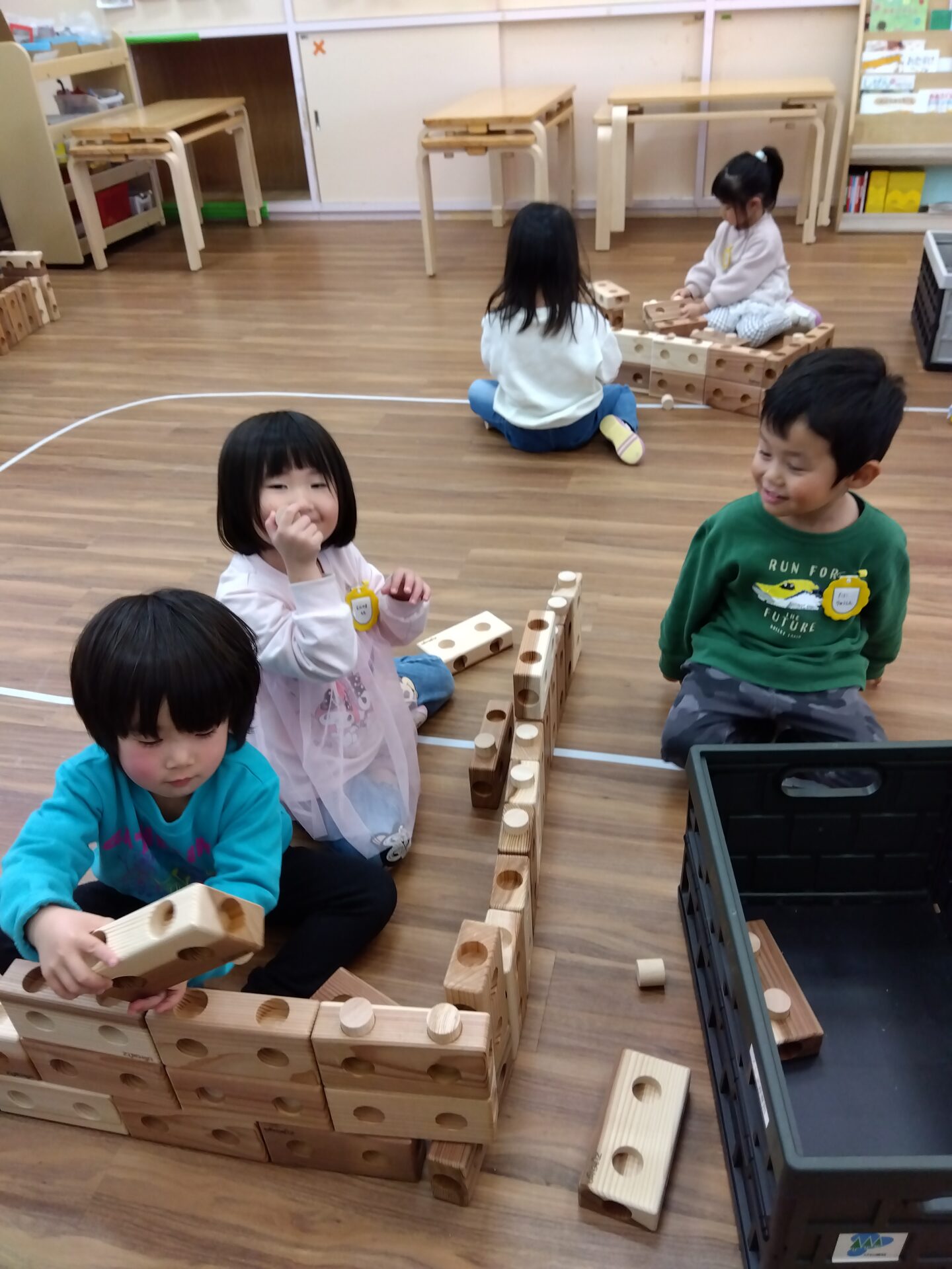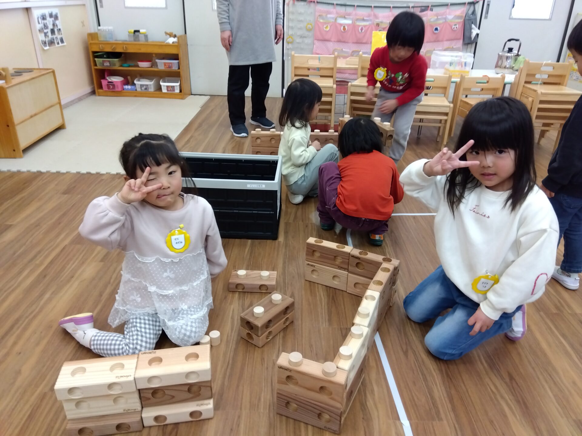 初めてのズレンガ遊びでしたがとても楽しかった様子のすいかぐみさん。次は何が出来上がるか楽しみです。