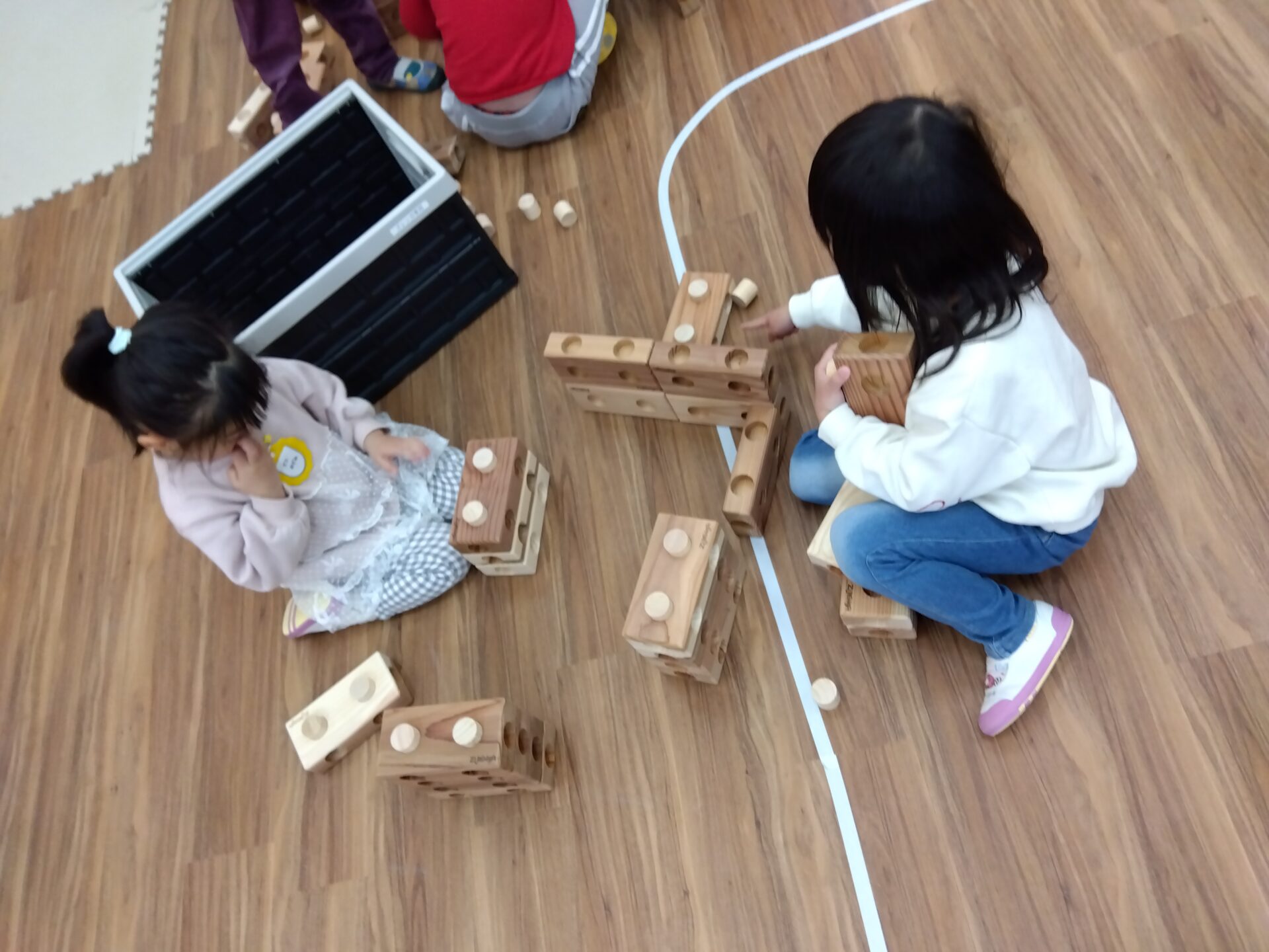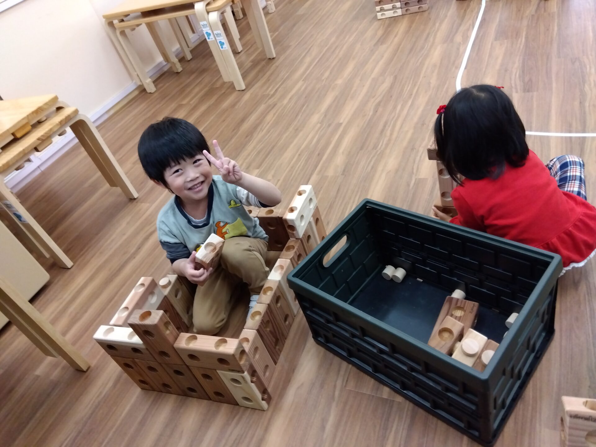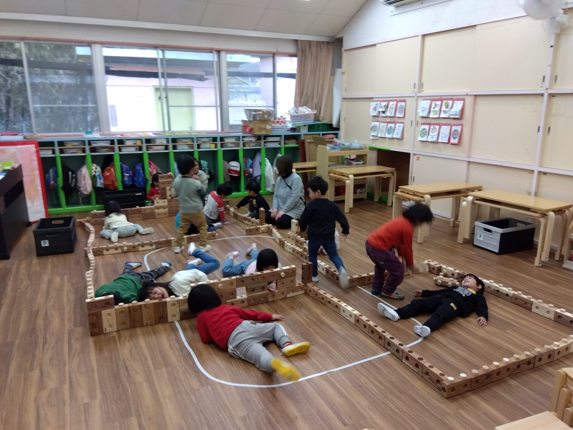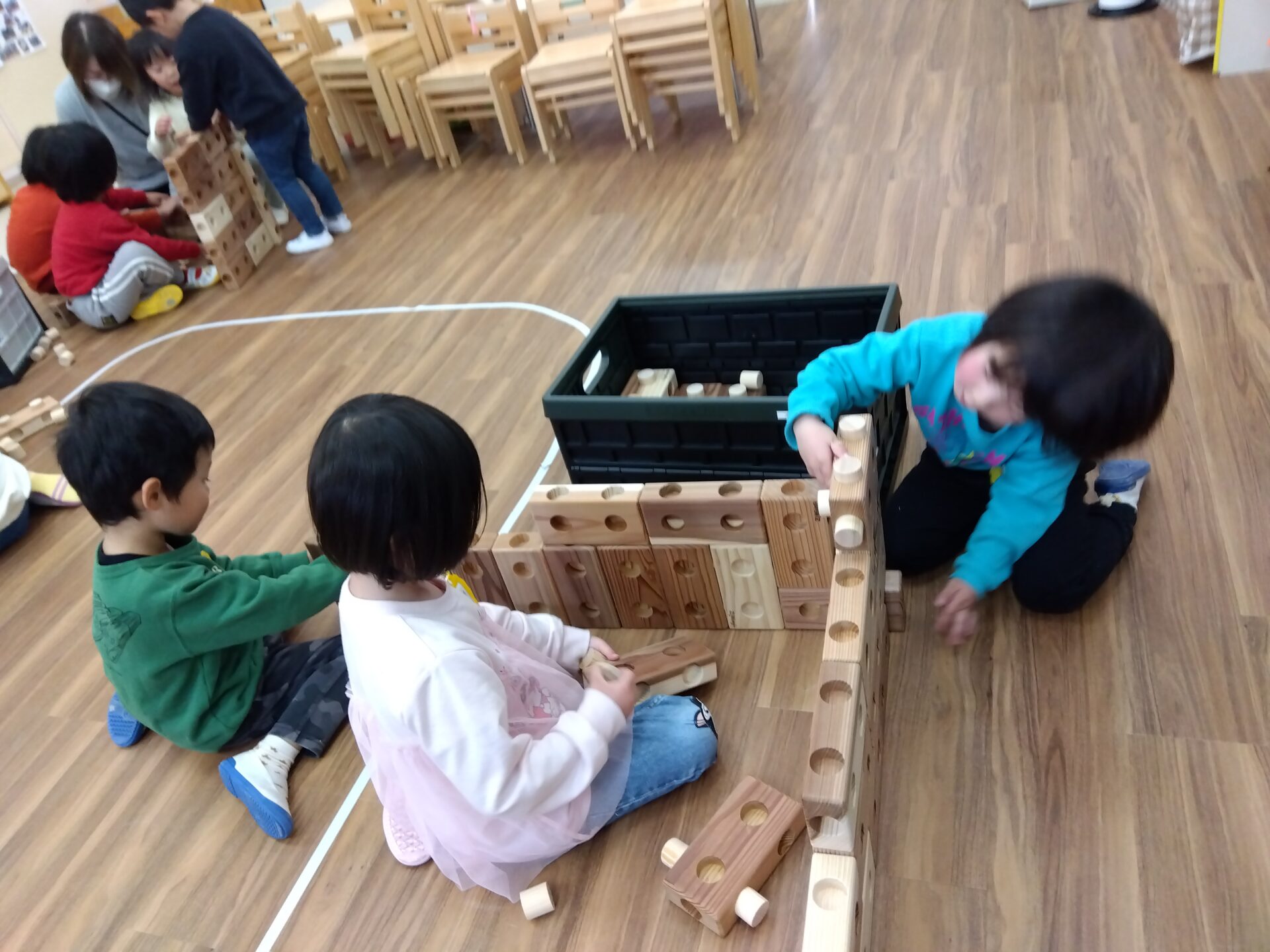 初めてのズレンガ遊びでしたがとても楽しかった様子のすいかぐみさん。次は何が出来上がるか楽しみです。