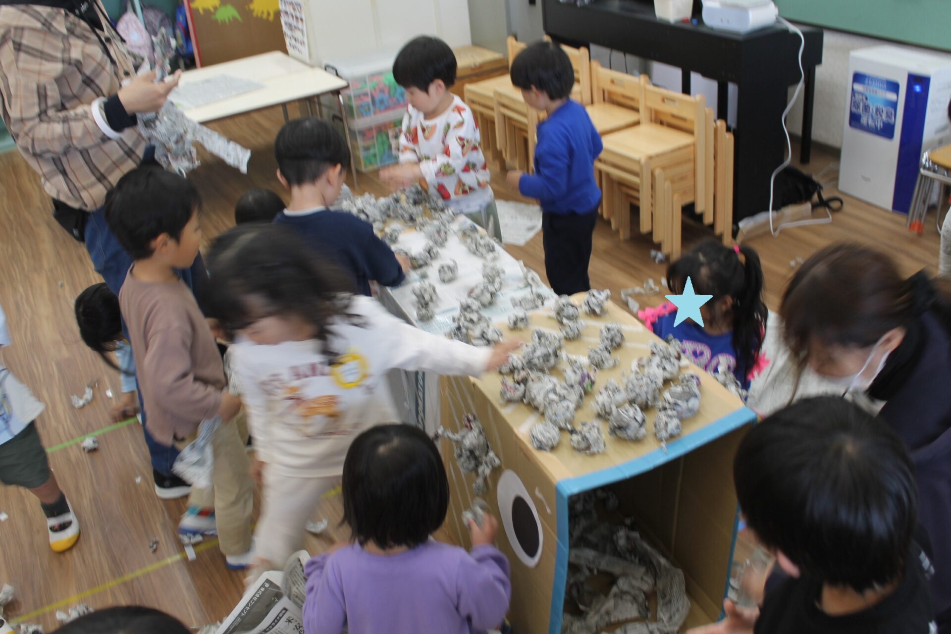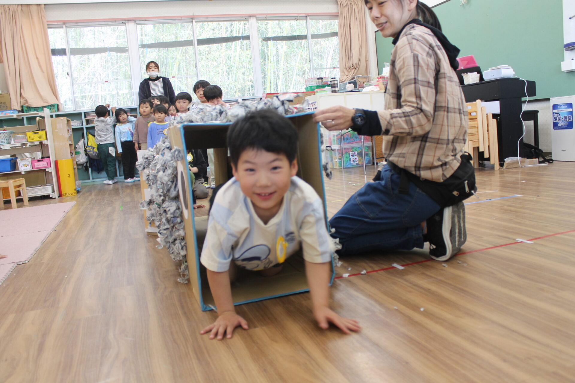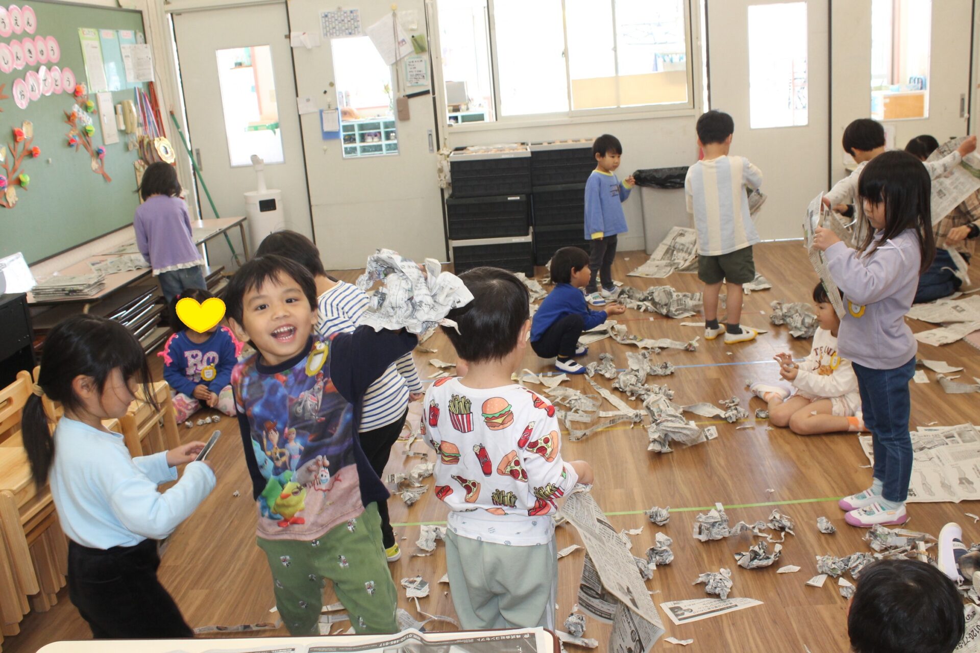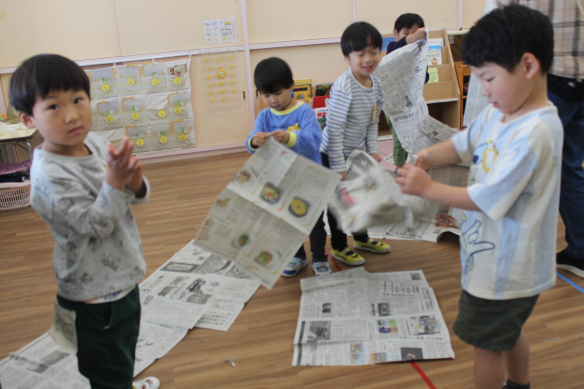 新聞紙遊び「楽しい!」